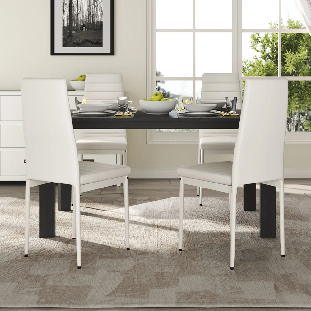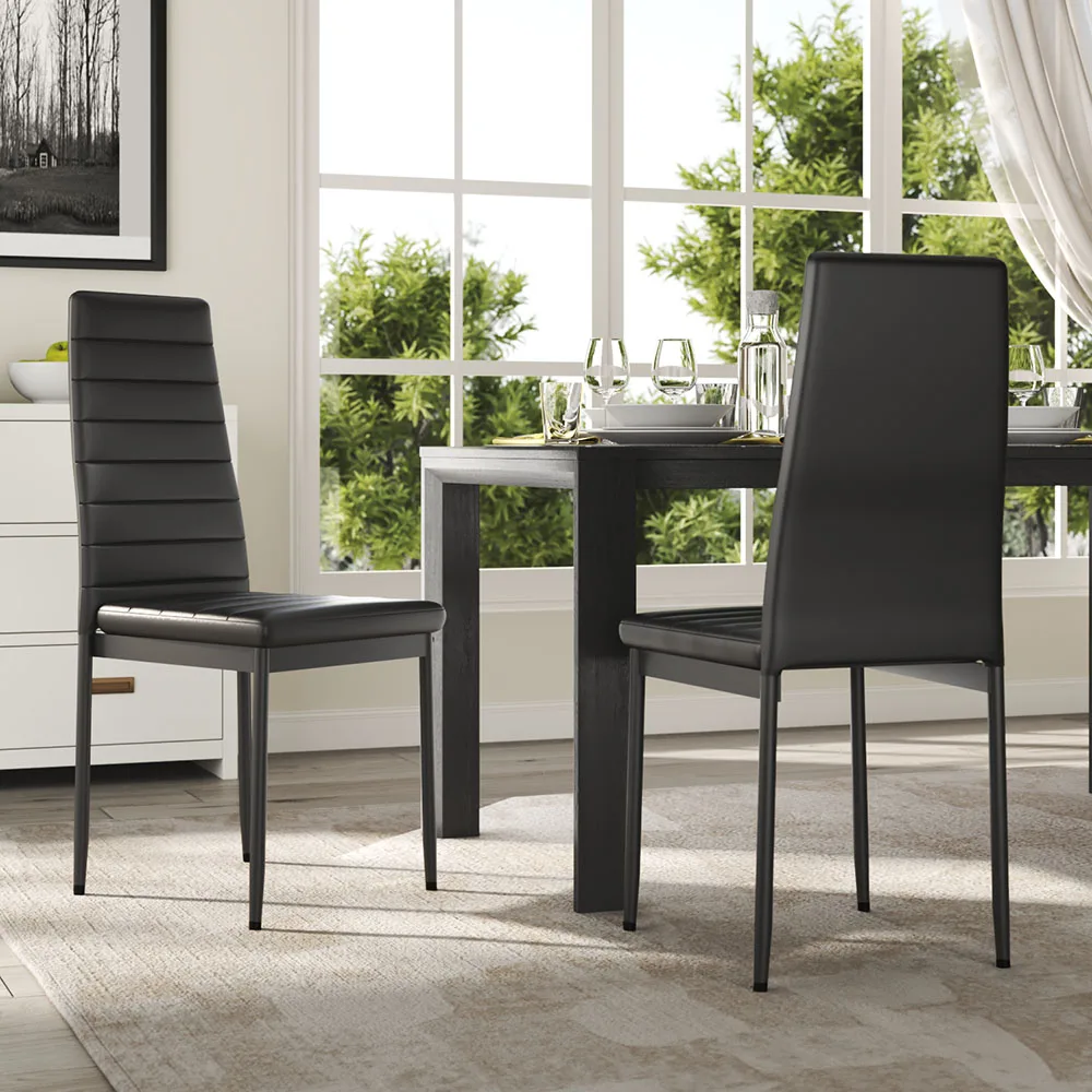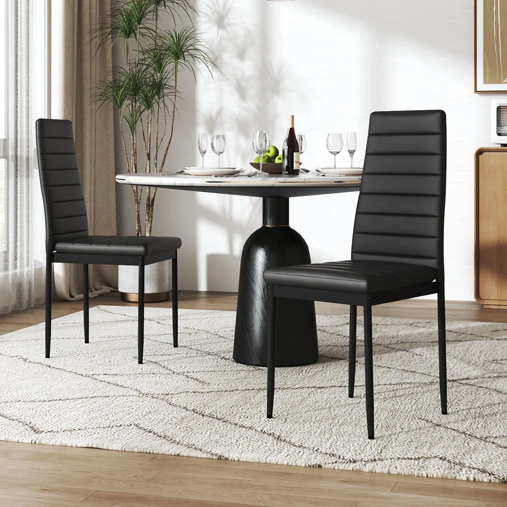 Upholstered in top-notch faux leather, this ergonomically designed Breeins dining chair elevates your dining experience. The plush seat cushion and backrest are generously filled with dense foam, providing exceptional comfort that eases your body and banishes fatigue. The quilted finish enhances ventilation across the seating surface, ensuring a breathable experience. The chairs blend harmoniously with our dining table, bringing a contemporary home aesthetic to your dining room.