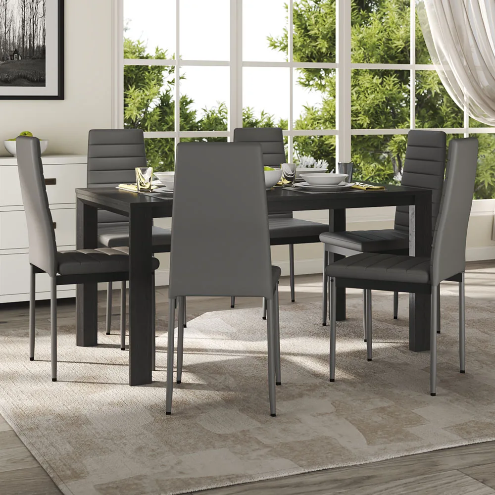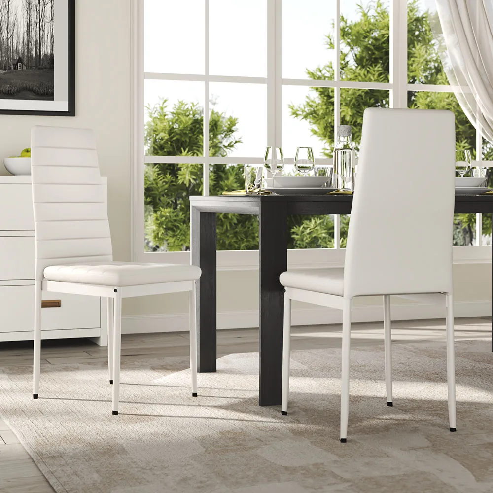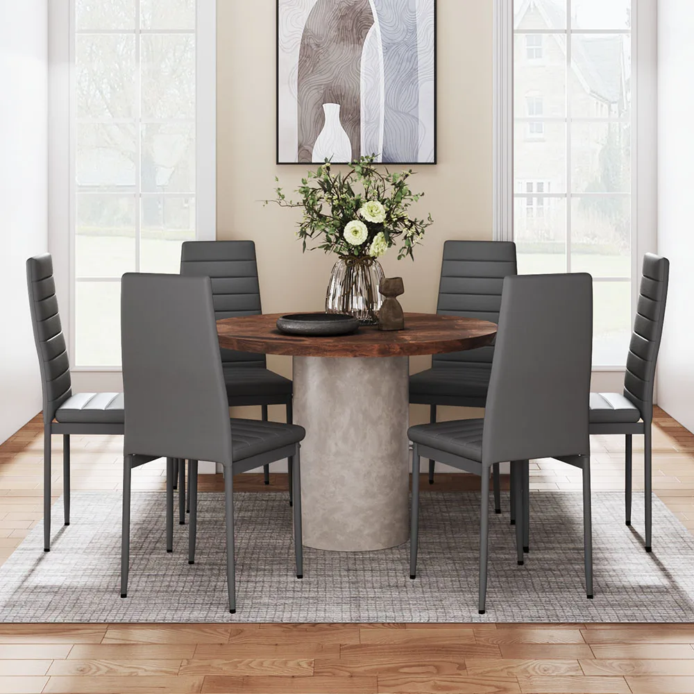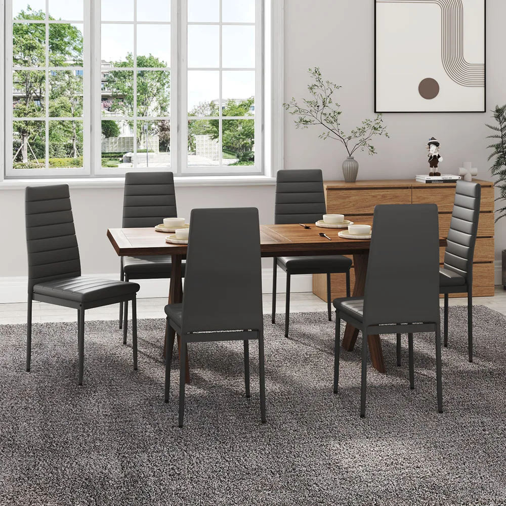 Upholstered in top-notch faux leather, this ergonomically designed Breeins dining chair elevates your dining experience. The plush seat cushion and backrest are generously filled with dense foam, providing exceptional comfort that eases your body and banishes fatigue. The quilted finish enhances ventilation across the seating surface, ensuring a breathable experience. The chairs blend harmoniously with our dining table, bringing a contemporary home aesthetic to your dining room.