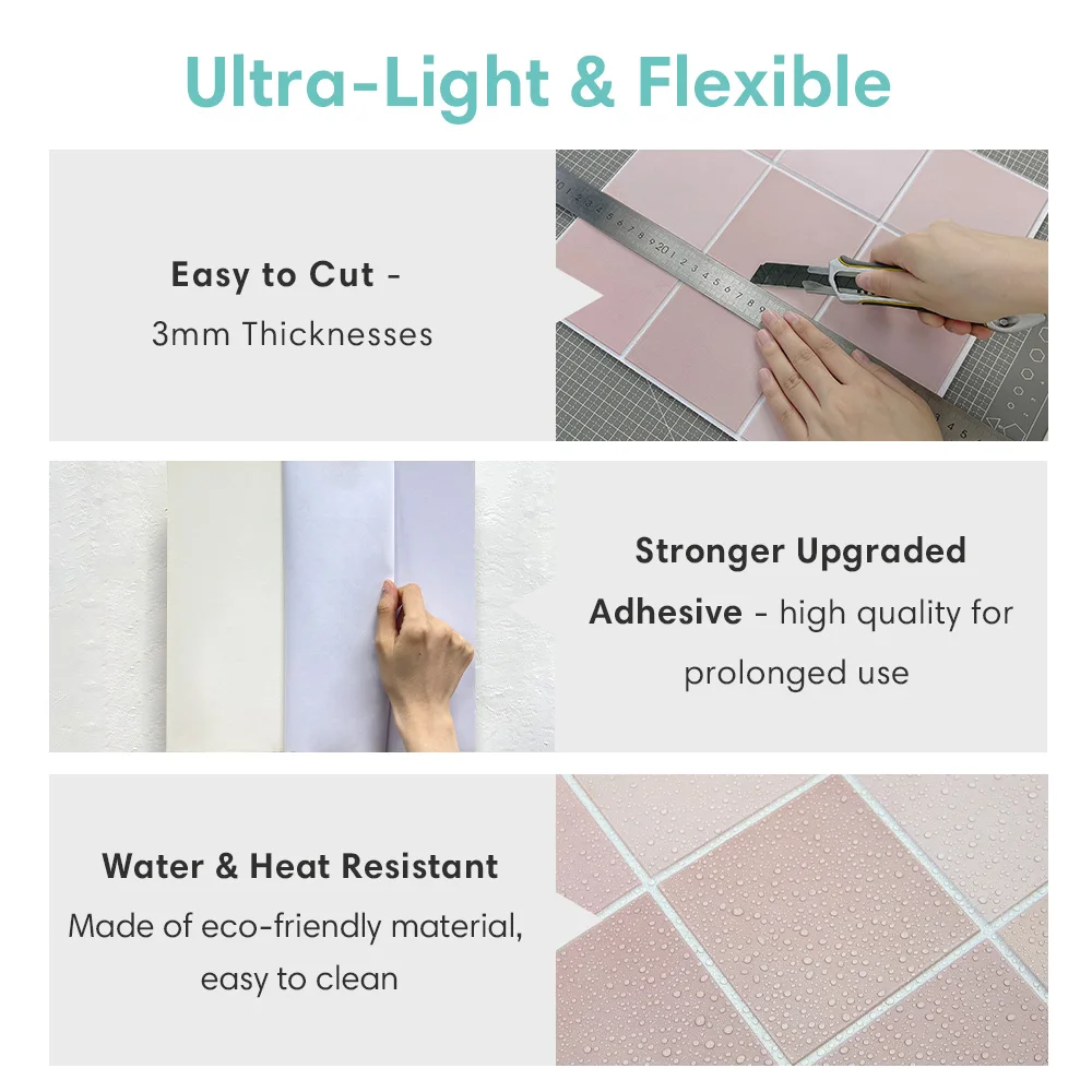 Stunning 3D Embossed Texture: Realistic 3D surfaces perfectly simulate various real decorative tiles and are lightweight and flexible.