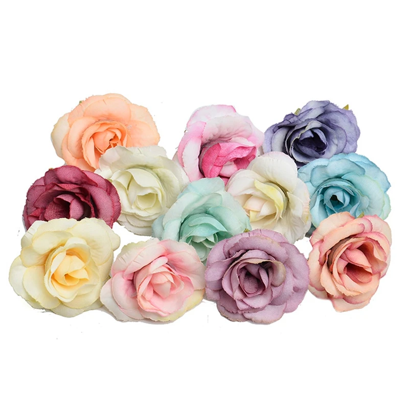 10PCs 4cm Artificial Flower Silk Rose Cloth Fake Flower Head Wedding Party Home Decoration DIY Scrapbooking Wreath Accessories