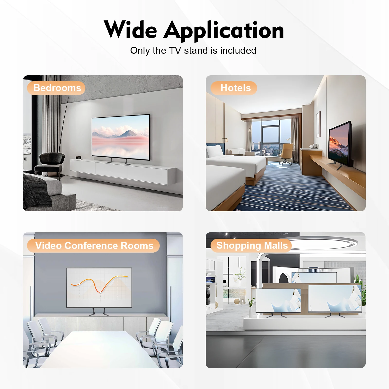 It can be used in bedrooms, shopping malls, hospitals, stages, schools, video conference rooms, trade shows, churches, hotels, etc. This stand can fit TVs between 32-70in.