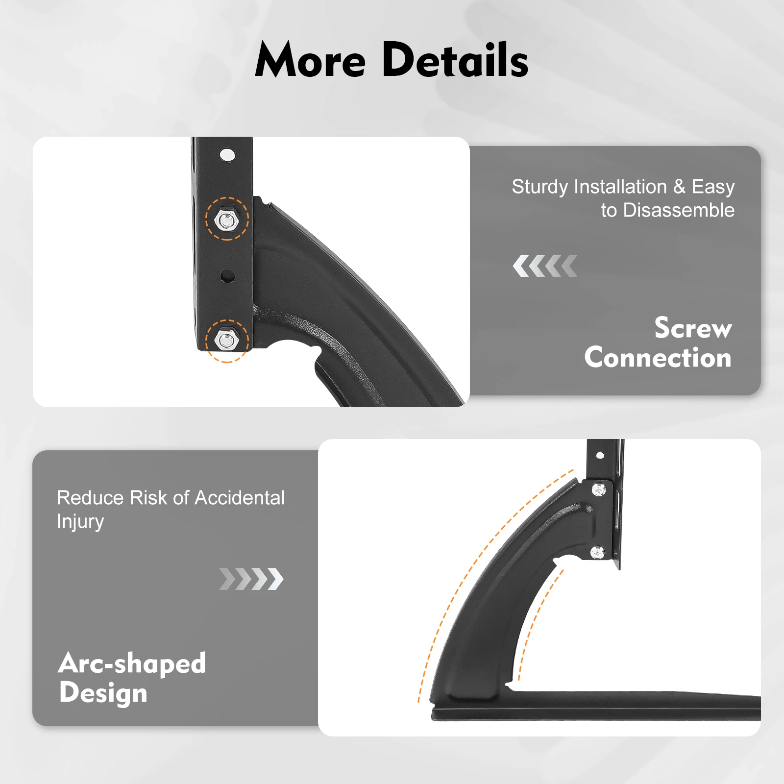 Arc-shaped Design:The bottom of the stand adopts an arc-shaped design, which is not sharp and greatly reduces the risk of accidental injury to others.