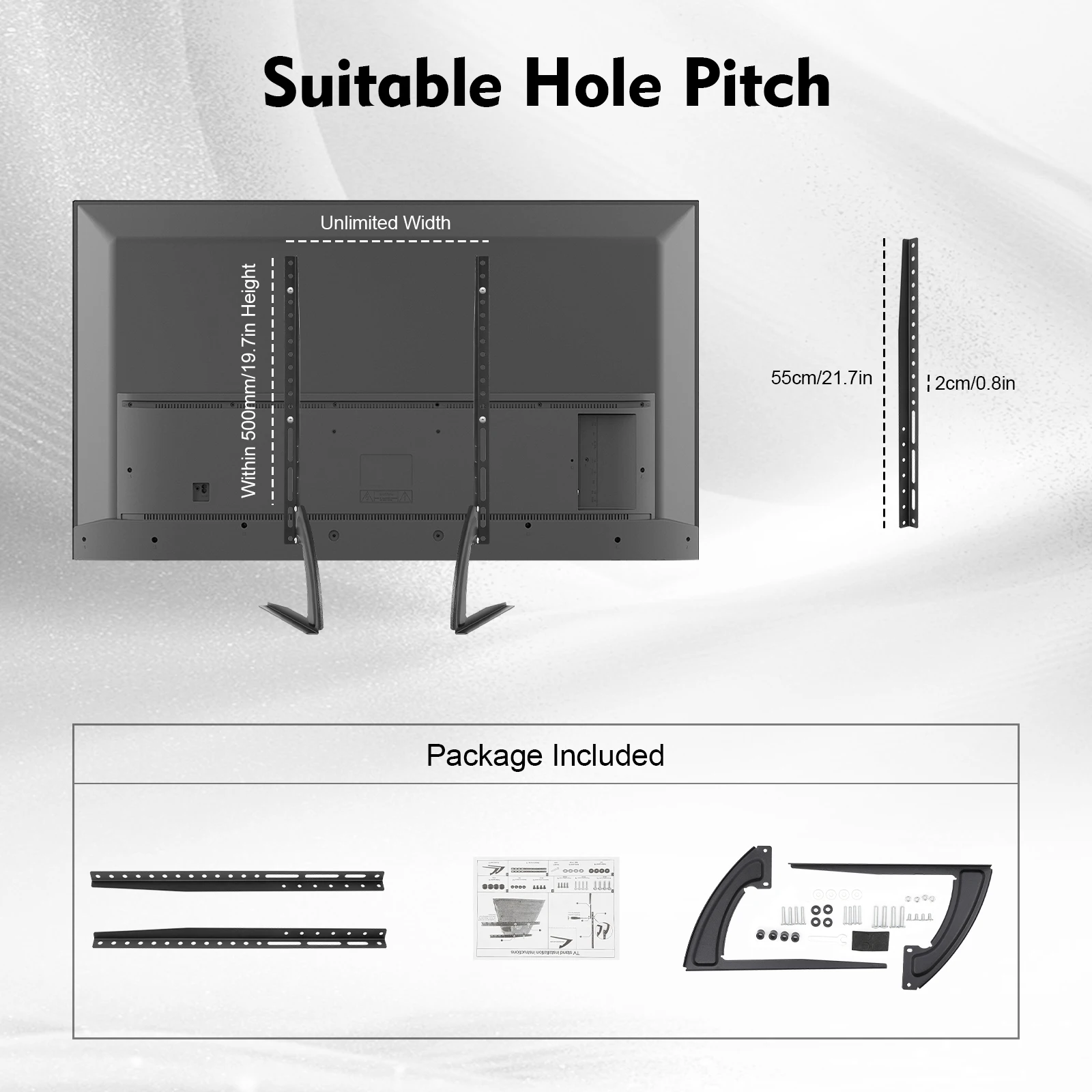 Suitable Hole Pitch: Within 500mm/19.7in (H); Unlimited (W)