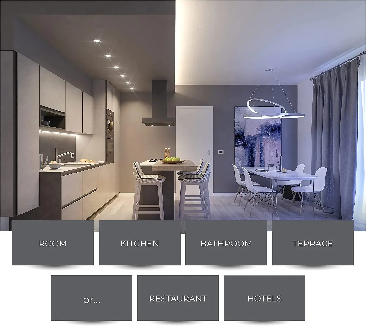 【Wide Applicability】: Excellent heat GU10 LED bulb dissipation luminaire, ideal for general indoor lighting in kitchens, dining rooms, living rooms, cloakrooms, corridors, balconies, warehouses, basements, etc.
