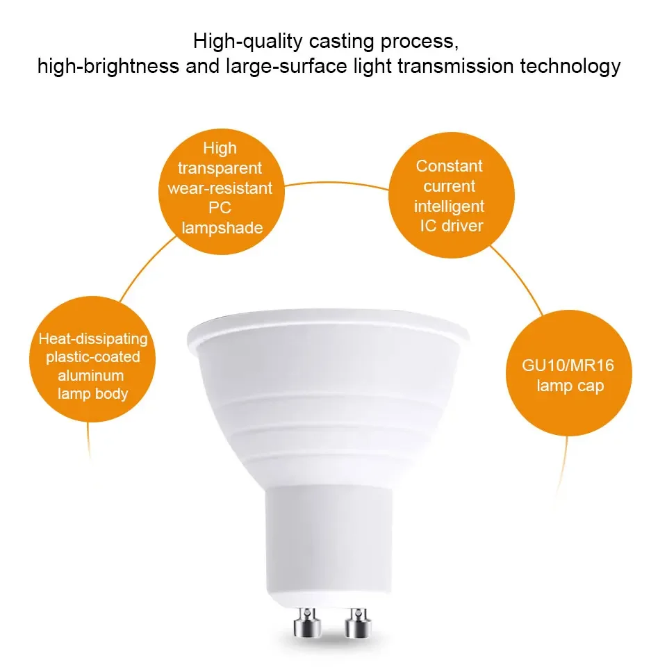 【Long Life】: This GU10 LED bulb with an astonishing lifespan of 5,0000 hours, you no longer have to keep changing light bulbs.