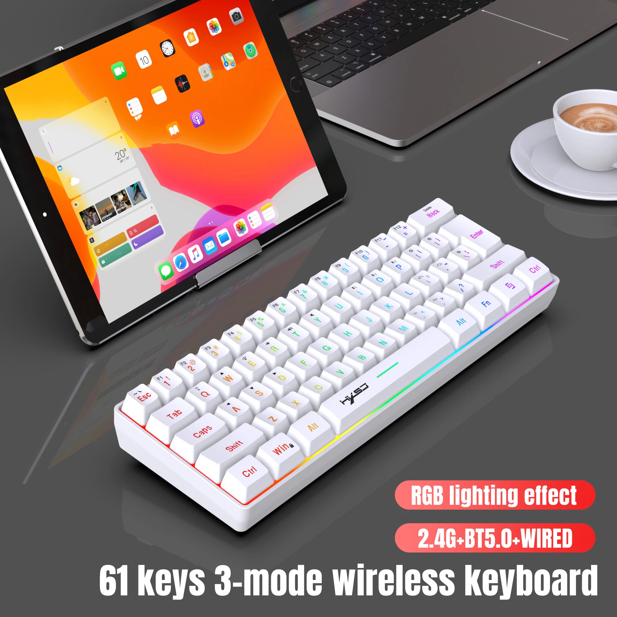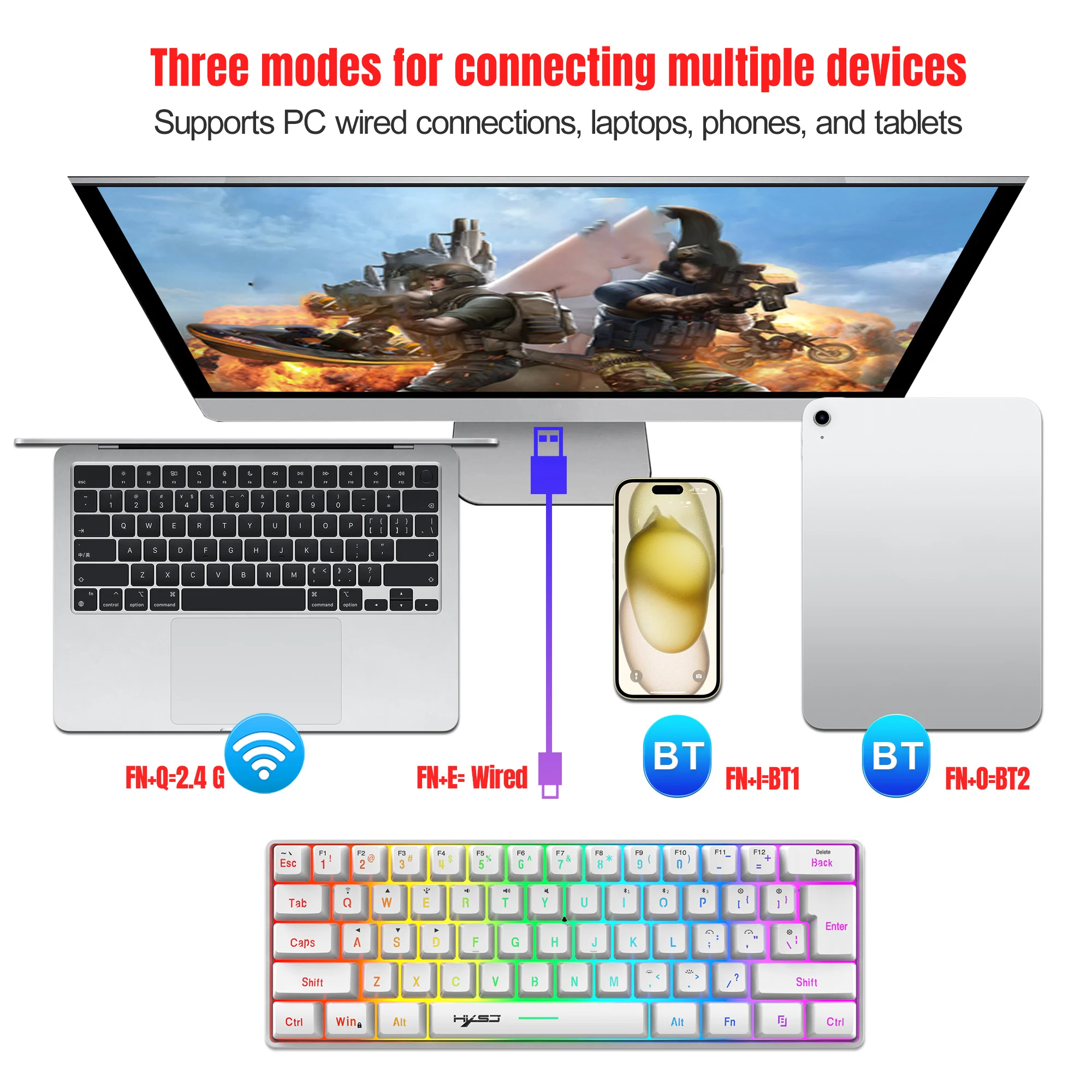 60% Wireless Gaming Keyboard, 61 Keys Triple Mode BT5.0/2.4G/USB-C Wireless Keyboard- RGB Backlit