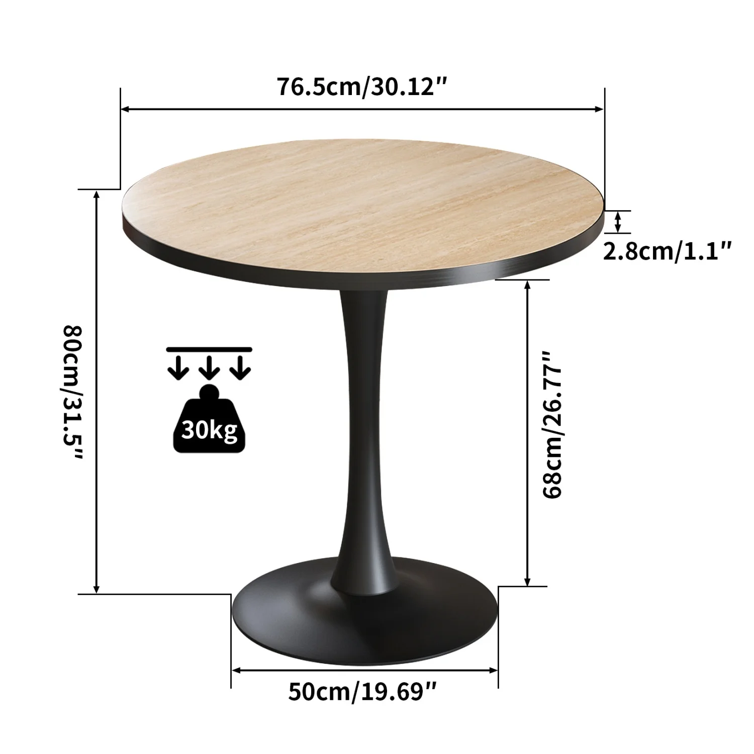 Tabletop Thickness: 2.8cm/1.1 inch