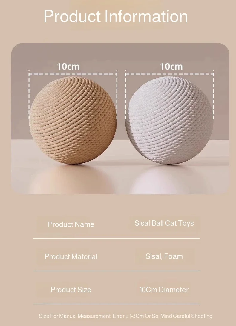 8/10CM Interactive Sisal Cat Scratching Ball Toy For Kitten Teeth Cleaning Anti Bite Cat Ball Sounding Toy Pet Supplies