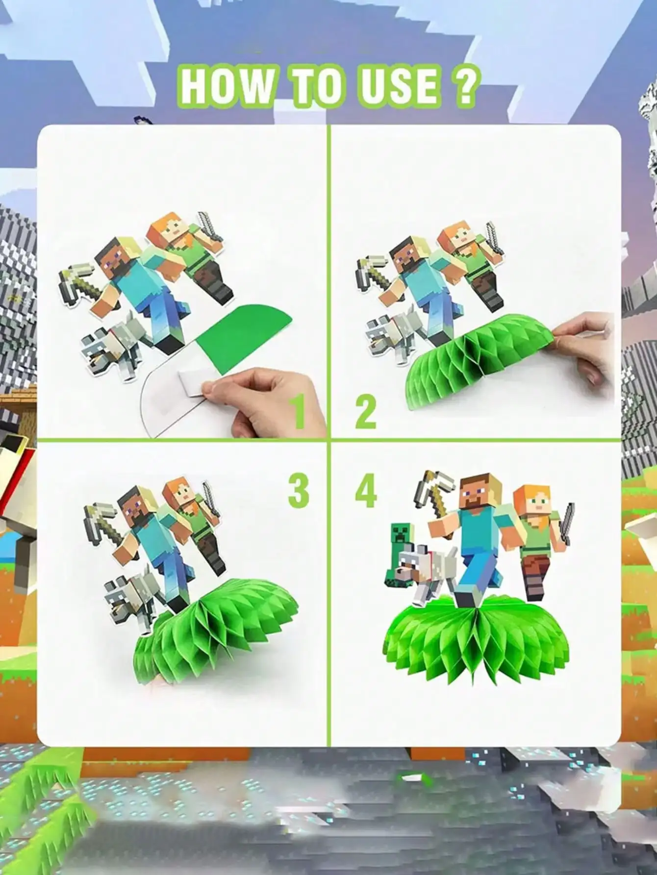 9pcs My World Pixel Video Theme Honeycomb Decor, Birthday Party Dining Table Honeycomb Display Paper,Christmas Party Decoration