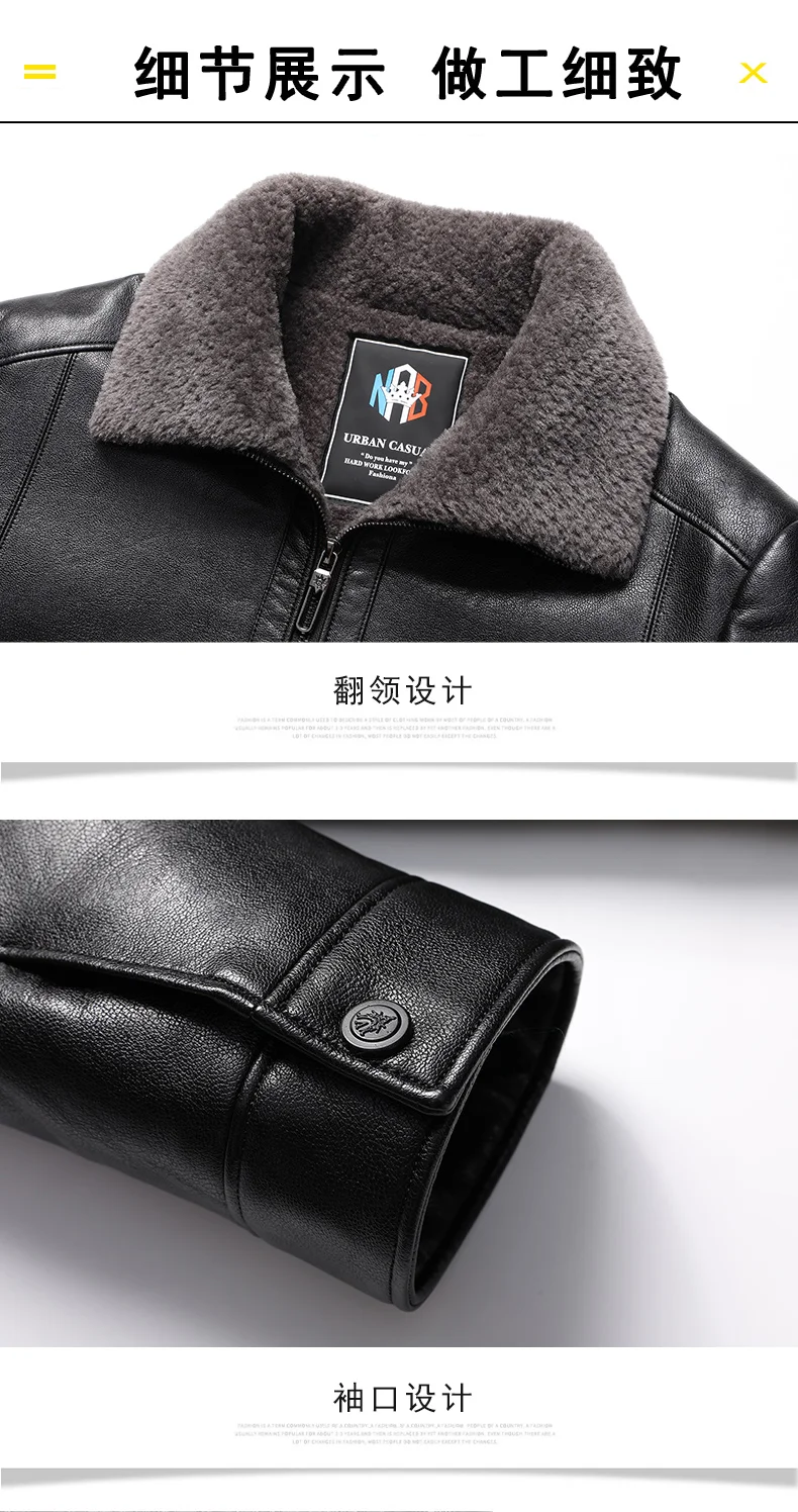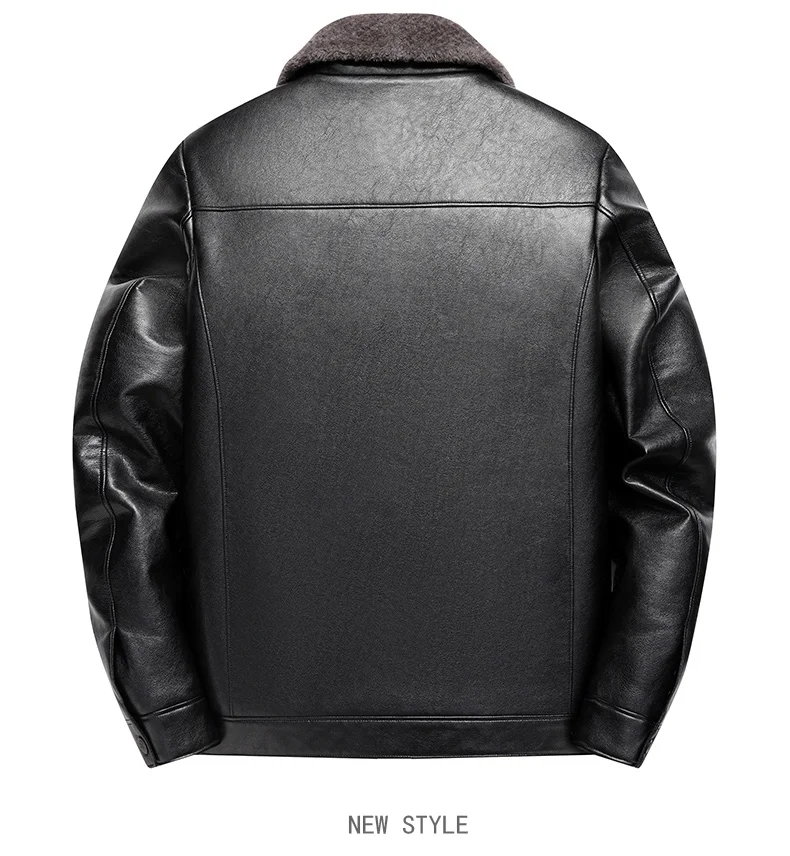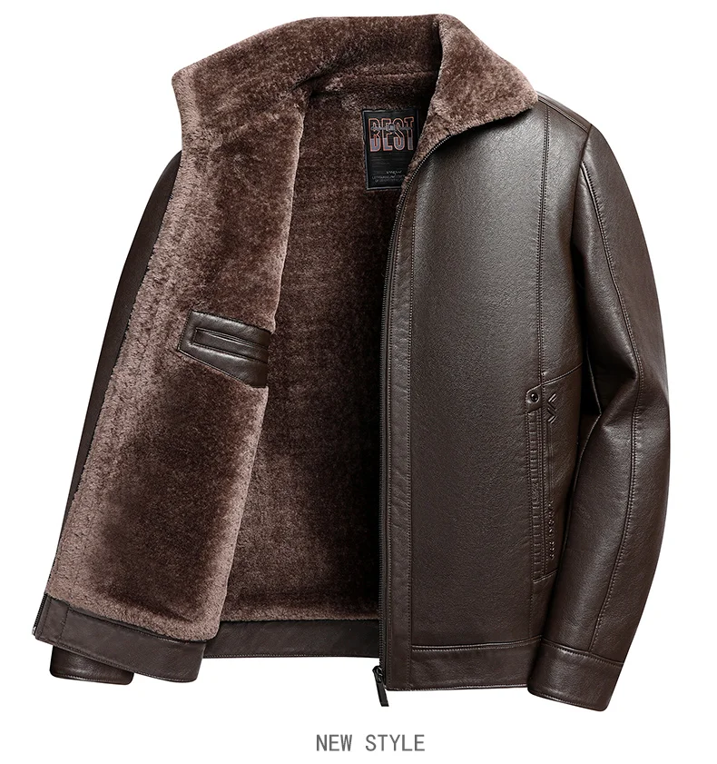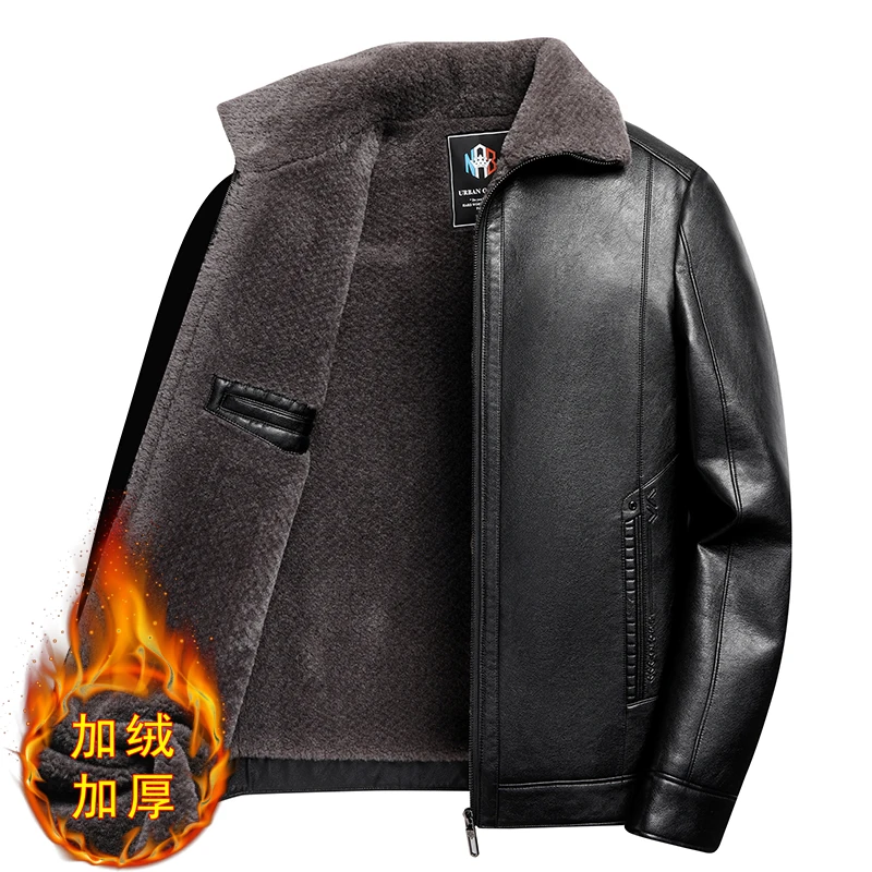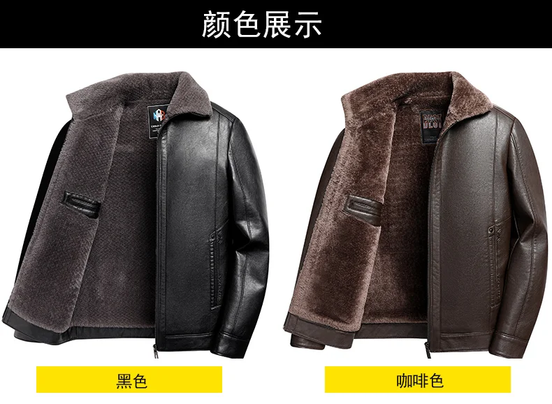 Add Fleece and Thickening Winter Dad Leather Jacket for Middle-aged Grandpa Fur Collar Middle-aged Men’s Coat for Warmth