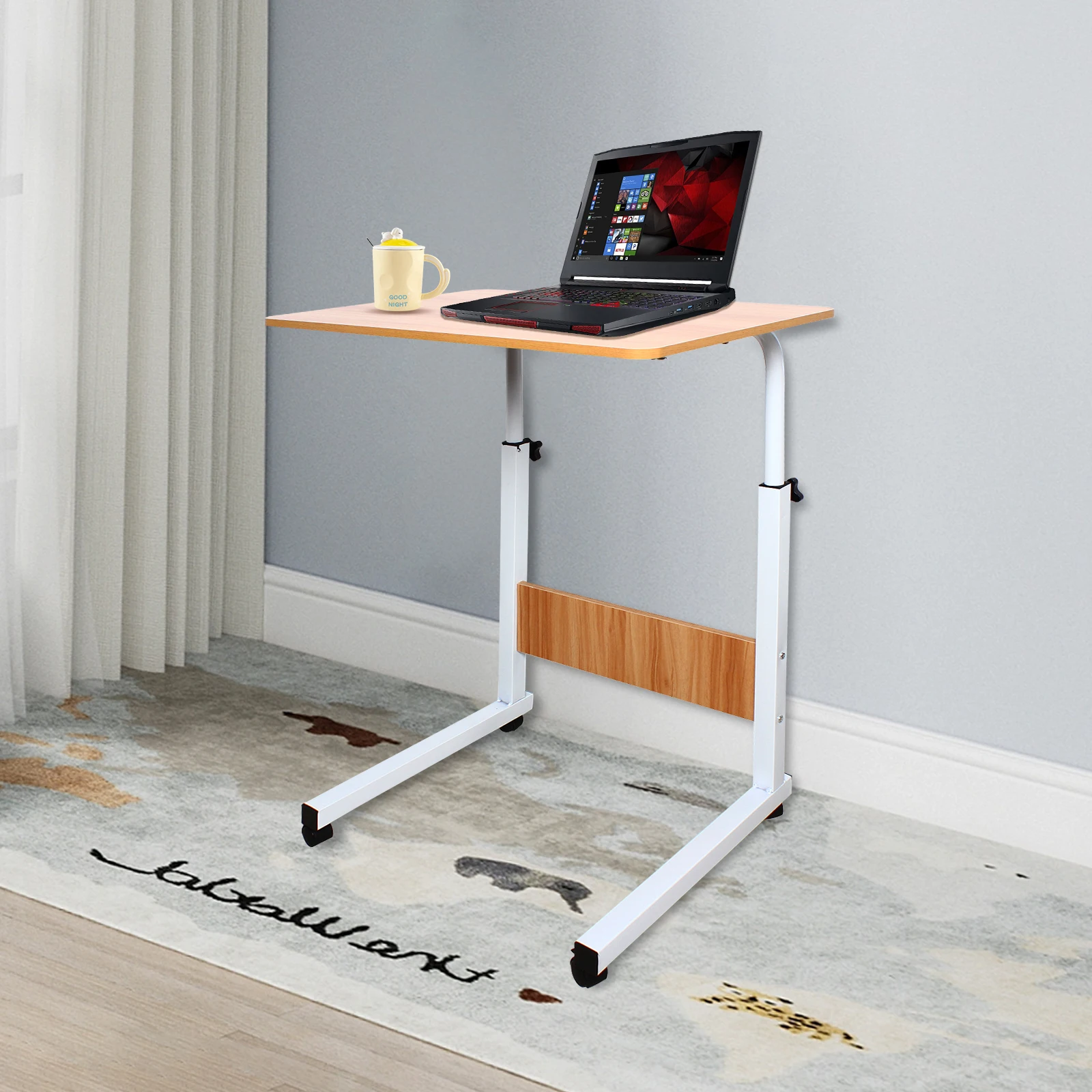 Adjustable Laptop Desk, Computer Stand with Wheels, Freestanding Computer Desk
