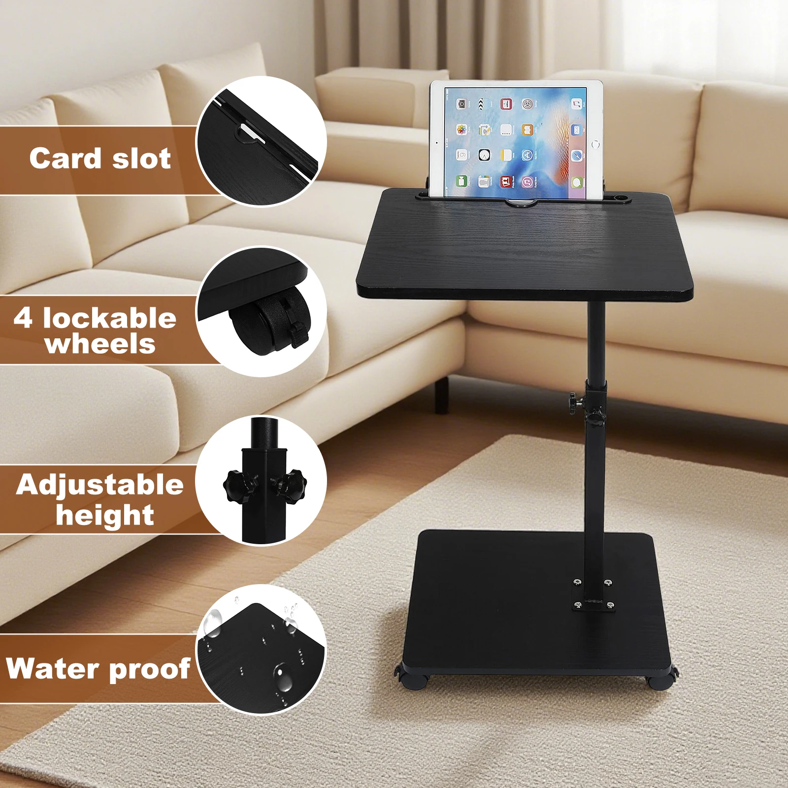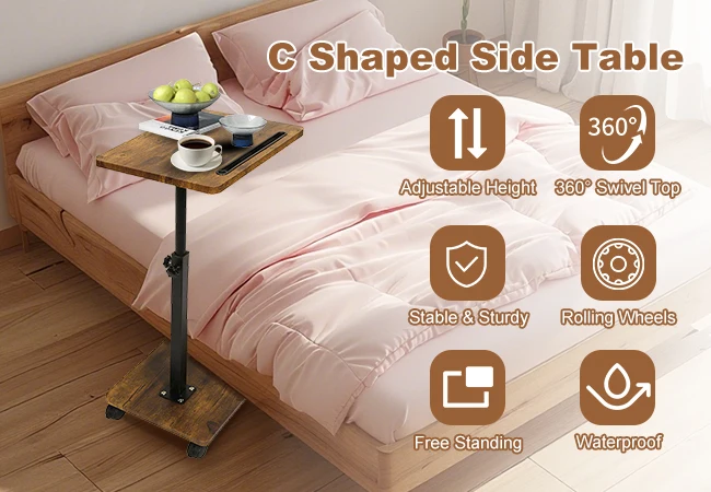 Adjustable Side Table With Wheel C-Shaped Simple Mobile Storage Desk Coffee Table Simple Bedroom Couch Bedside Table
