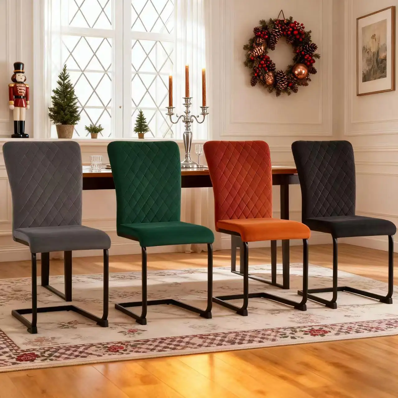 Modern Dining Chairs :AINPECCA dining chairs boast a contemporary high – back and bow – shaped design. The diamond – quilted velvet or suede upholstery, along with padded seats, offers both elegance and comfort, making them a perfect fit for modern – themed dining areas.