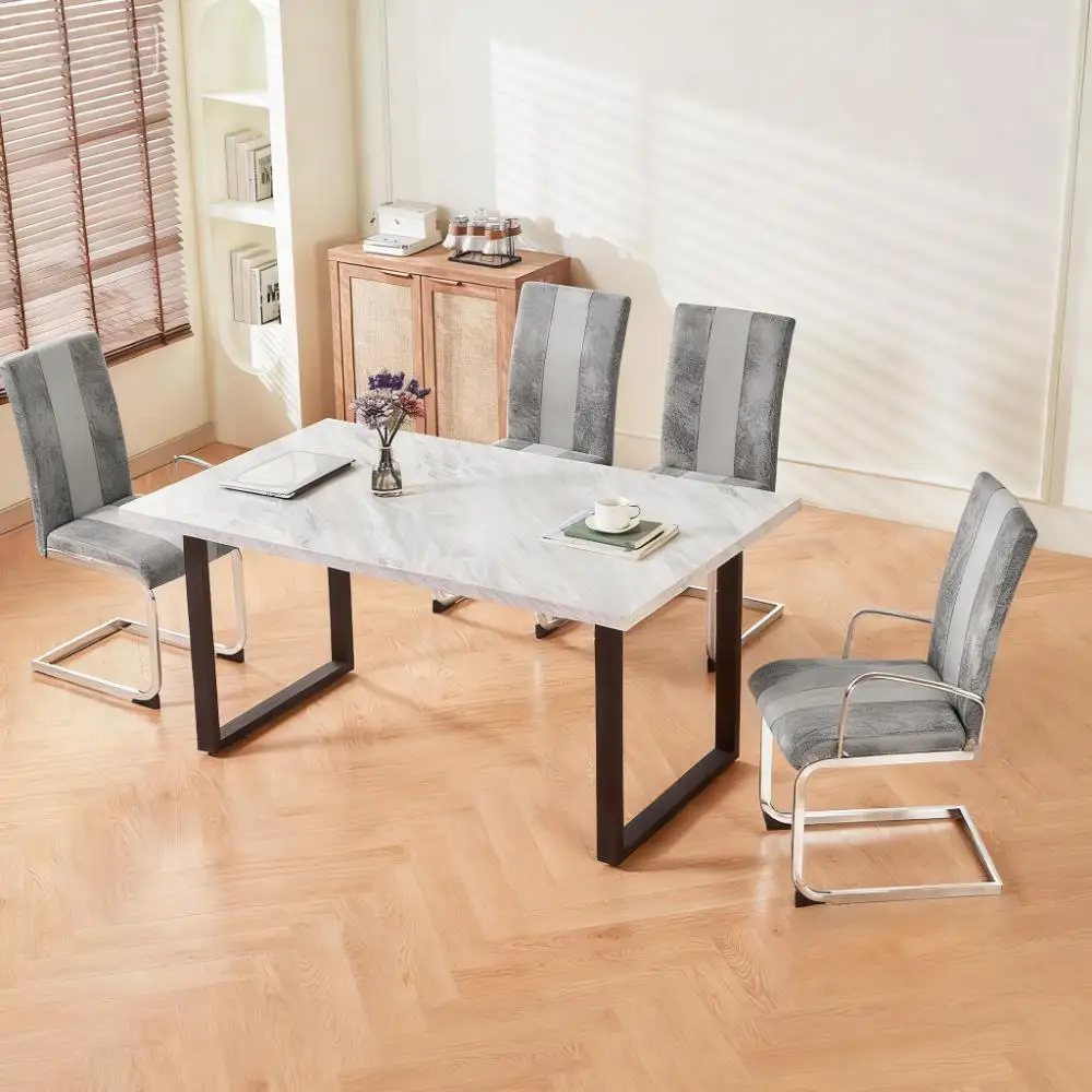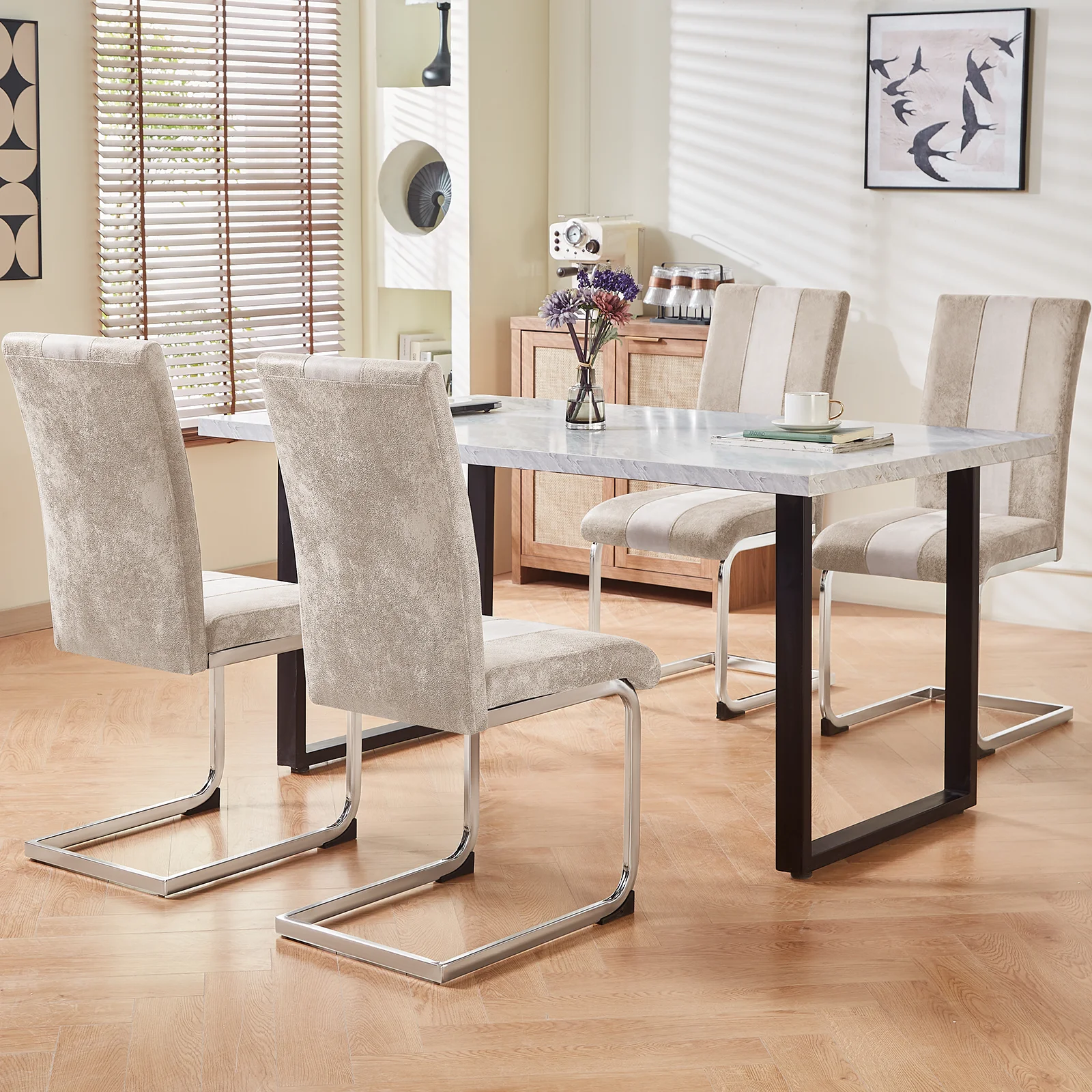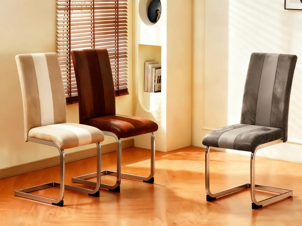 【Concise & Modern Dining Chairs】Featuring a single, fluid curve that forms both the supportive back and sturdy base, its minimalist silhouette makes a powerful style statement. Crafted from high-quality suede material, it offers a luxuriously soft yet resilient feel, is incredibly easy to clean and provides exceptional durability. The perfect fusion of avant-garde art and everyday function for your living space, office or lounge.