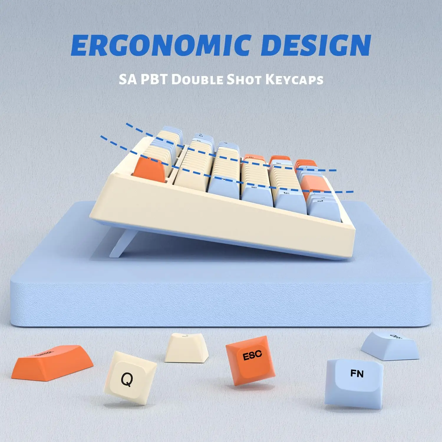 M87 Mac keyboard has a stylishmixed-match keycap layout with 80%, double-shot injection non-slip SA PBT keycaps provide an excellent touch experience and a long service life. The 2-position adjustable kickstand feetcan also adjust the typing angle.