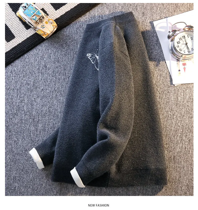 Be the first to review “Autumn/Winter Fashion Butterfly Printed O-neck Sweater Solid Color Warm Knitted Sweater Men’s Pullover Home Clothes”