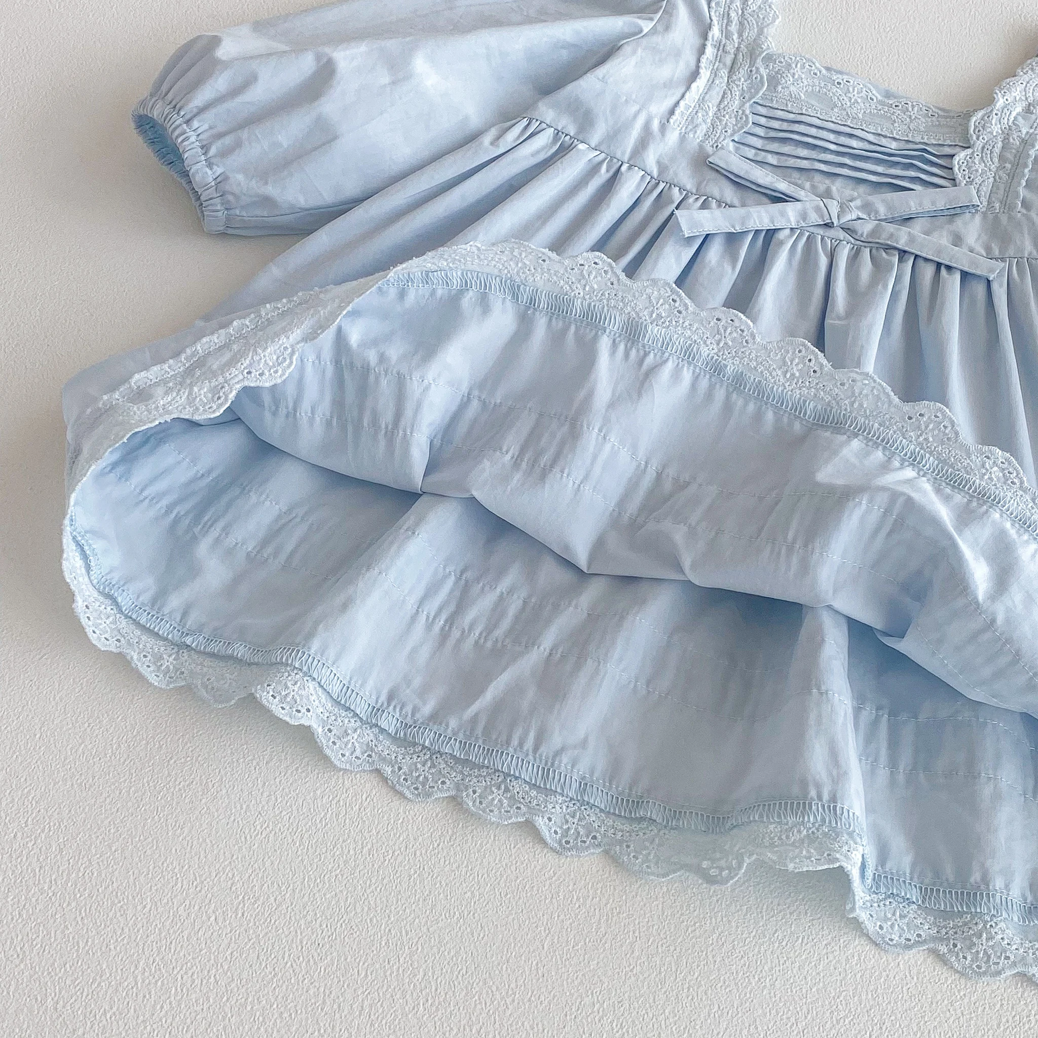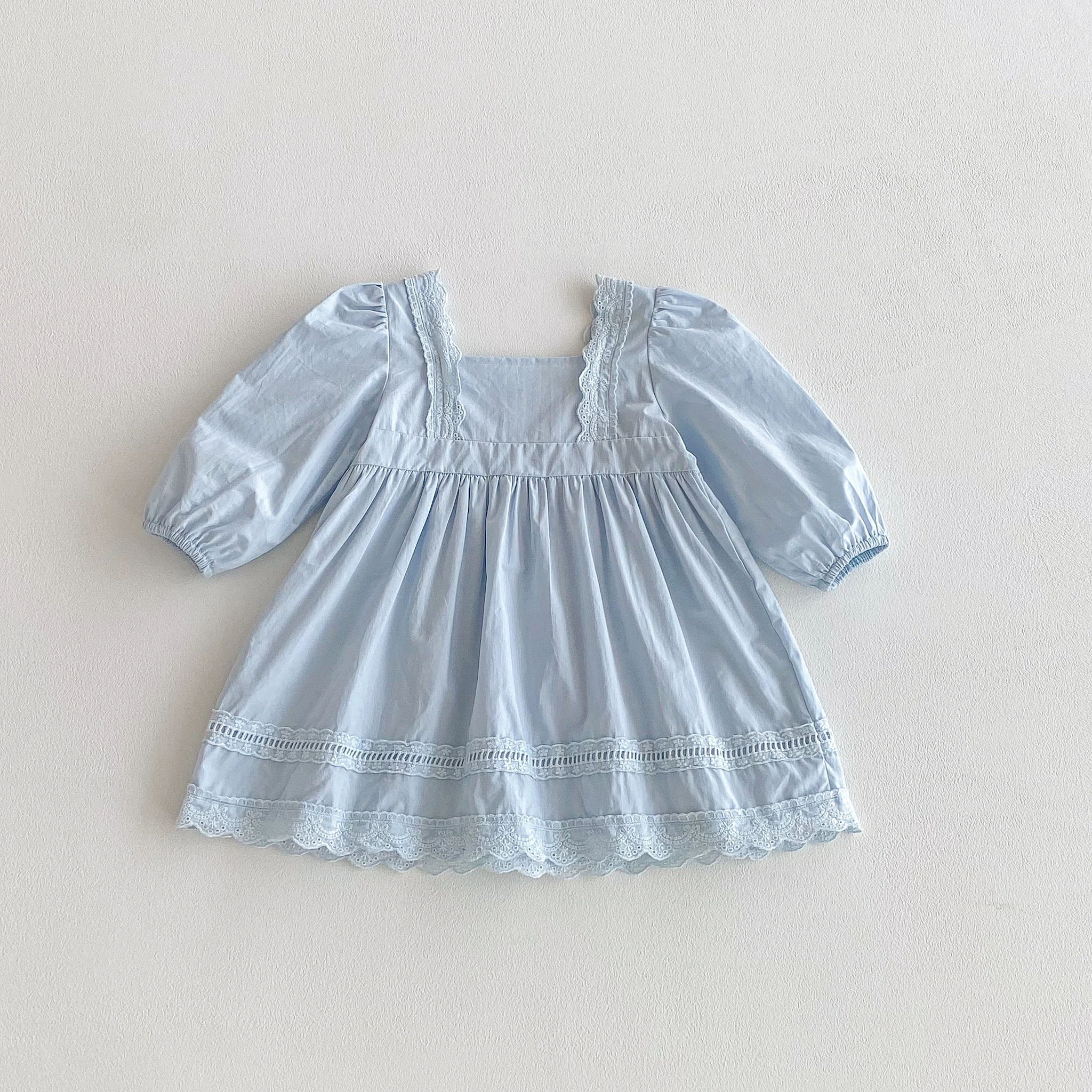 Baby dress, lace-trimmed square neck dress, autumn long-sleeved bow princess dress