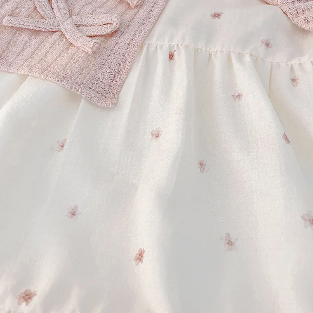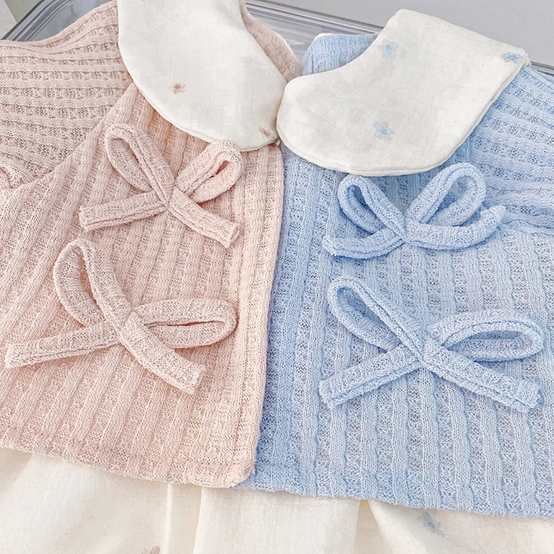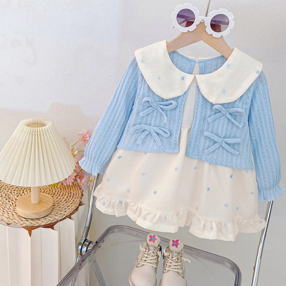 Baby Girl Clothes Spring And Autumn Bow Doll Collar Fake Two Pieces Long-Sleeved Girls Dress Cute Simple Baby Girl Dress