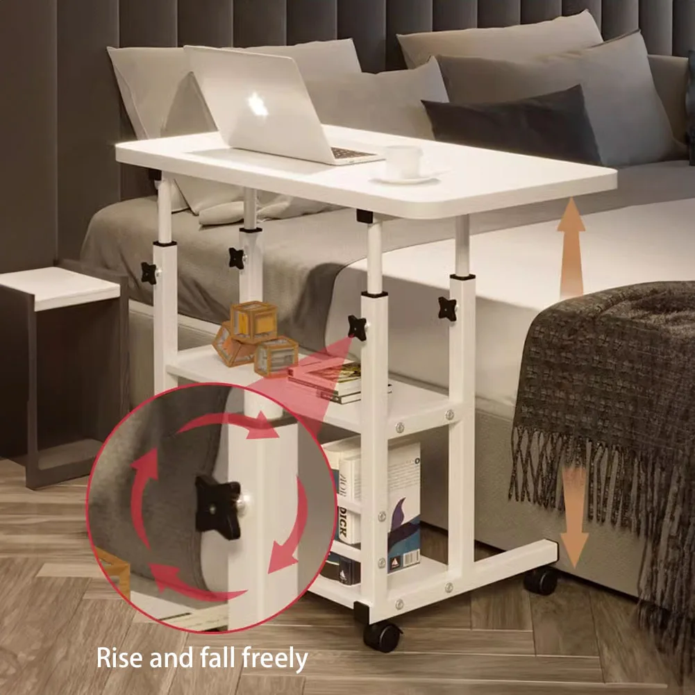 Bedroom Dormitory Movable Bedside Laptop Table Height Adjustable Bedside Table With Wheels Desk Tray Table