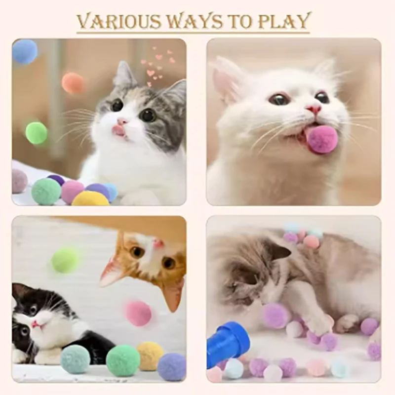 Our plush pom pom balls are colorful and lightweight. You can make your own cat ball toys and cat necklace accessories. You can also use them to make holiday decorations on special days.