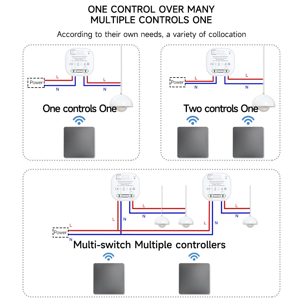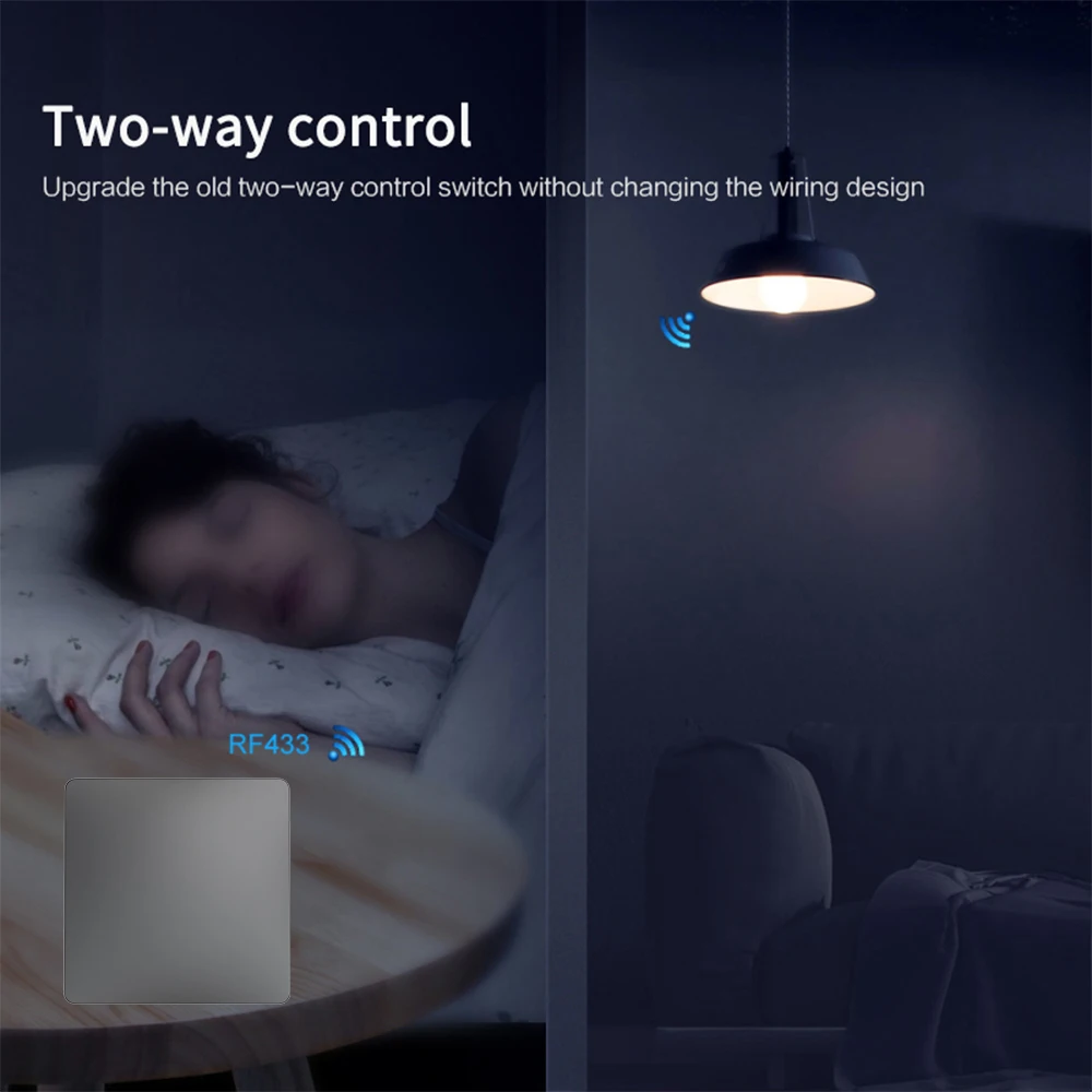 Function 2: Easy to install, the switch panel does not require rewiring. Simply connect the receiver to the live and neutral wires of the desired light, and press the switch panel to control the light on and off.We have matched the product code when it leaves the factory, and there will be no code confusion, so you can use it directly! (the original wall switch must be powered on).
