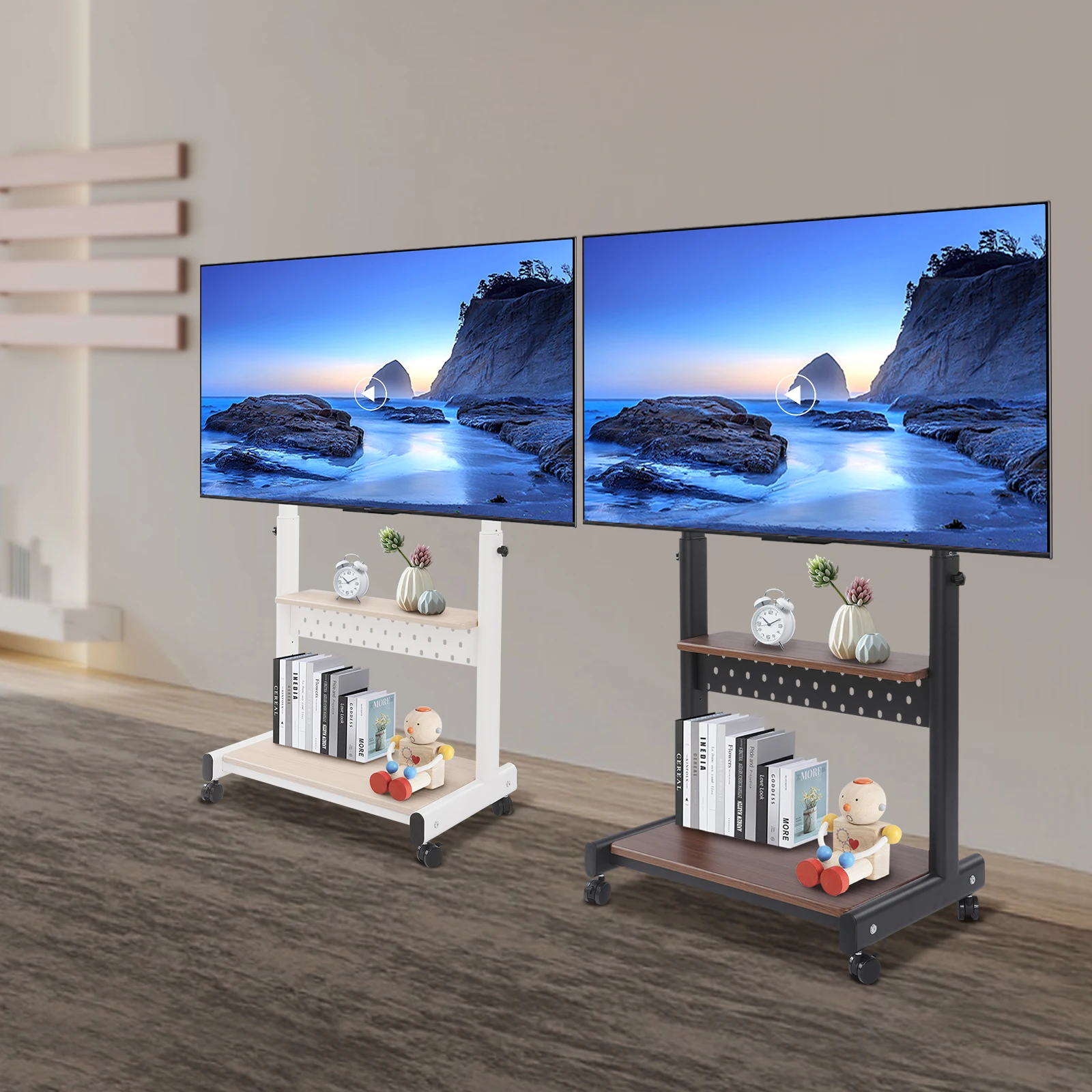 Our TV stand has adjustable height and is movable, which can adapt to different reclining positions you have on the sofa, providing you with a comfortable movie-watching experience. Premium materials and exquisite craftsmanship make it sturdy and durable. Its strong load-bearing capacity allows you to use it with confidence. Take it home quickly!