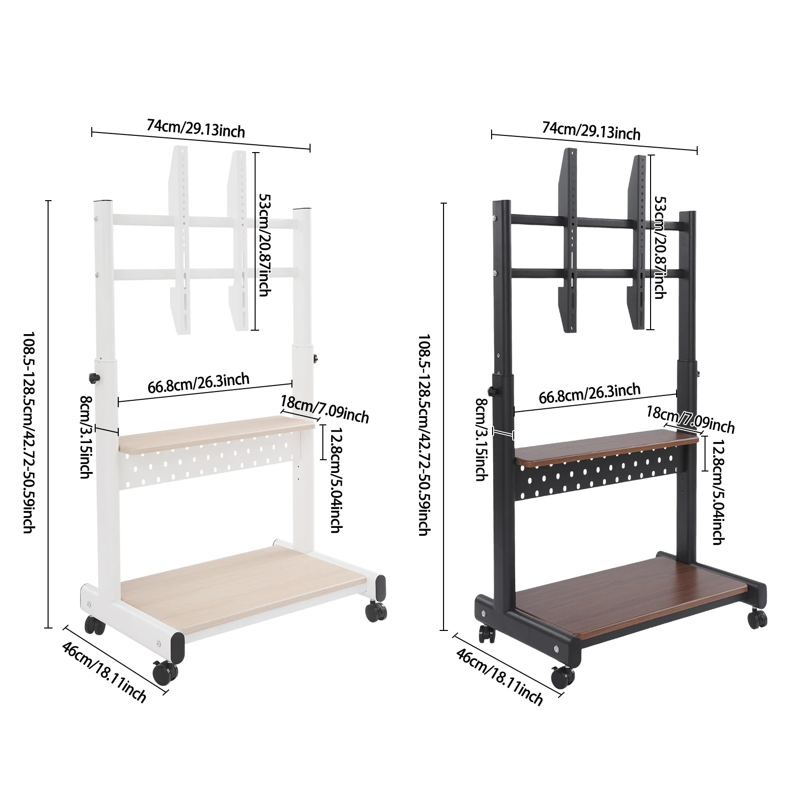 Cold-rolled Steel TV Stand with Wheels 108.5-128.5cm Adjustable Height TV Stand TV Stand with 4 Universal Wheels
