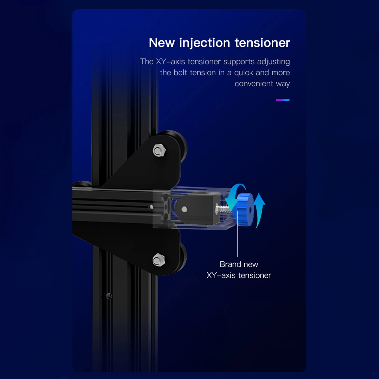 -New injection tensioner: XY axis tensioner supports adjusting belt tension in a faster and more convenient way.