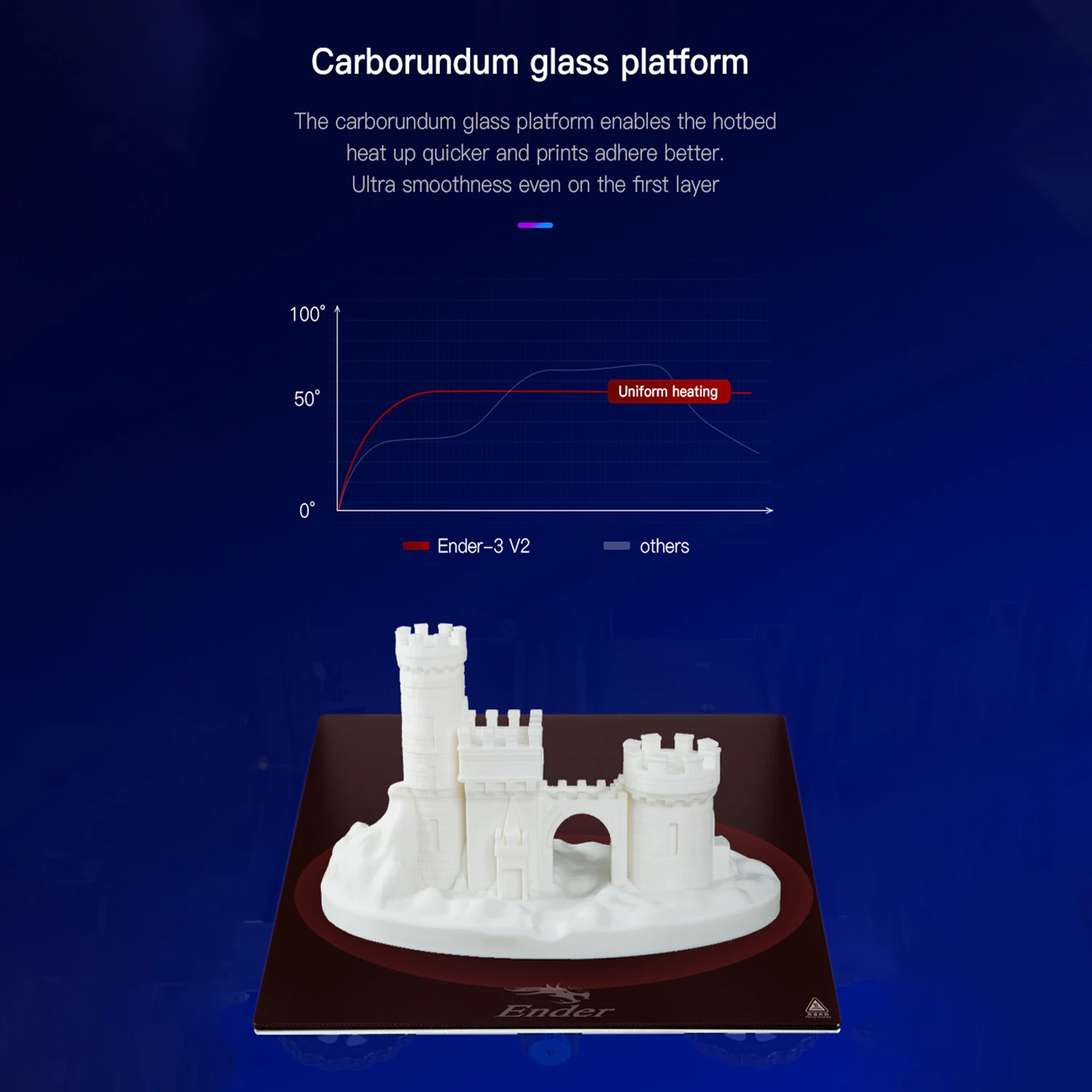 -Emery glass platform: The emery glass platform enables the hot bed to heat up faster and the printing effect is better. It has super smoothness even on the first layer.