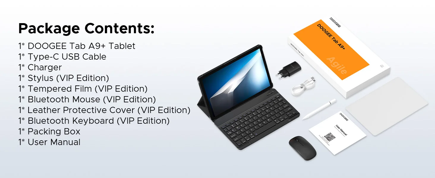 DOOGEE Tab A9+ 2 IN 1 Smart Tablet PC Android 15 11” Display 20GB RAM(4+16) 64GB ROM 8580mAh Battery Dual Speakers Widevine L1