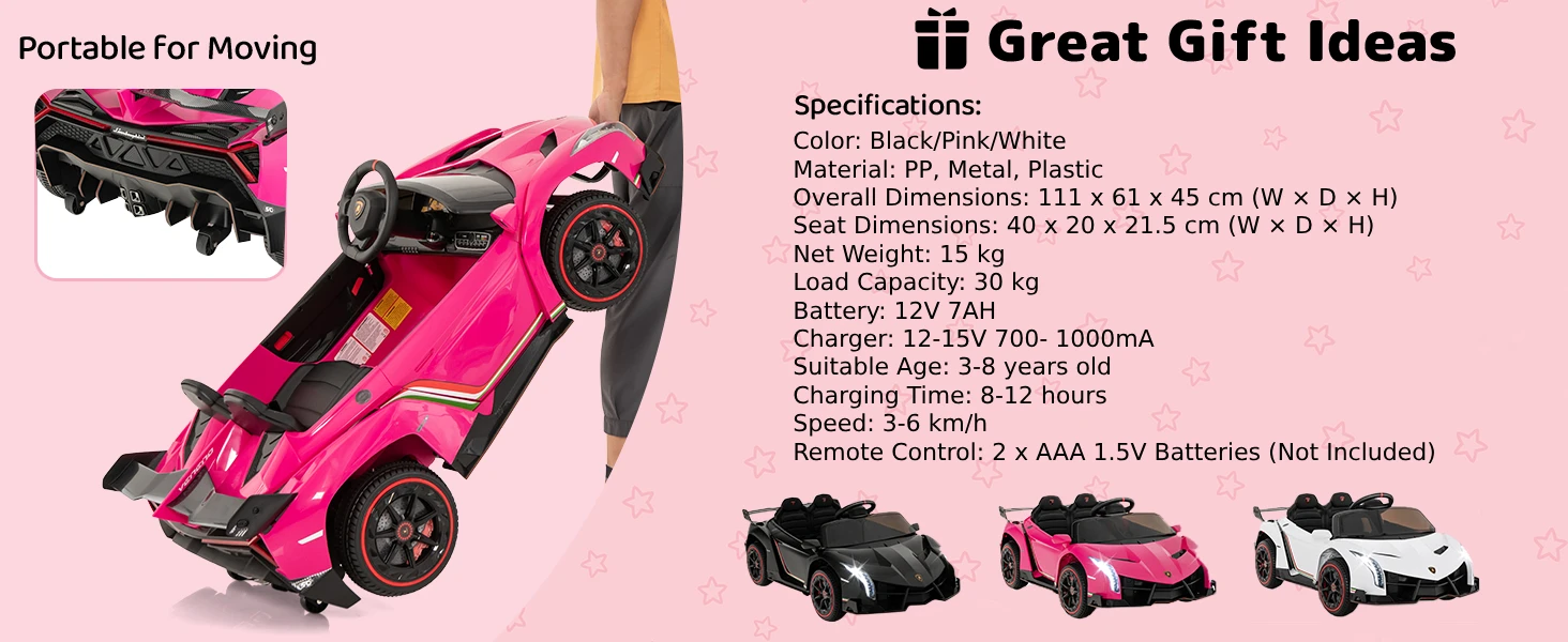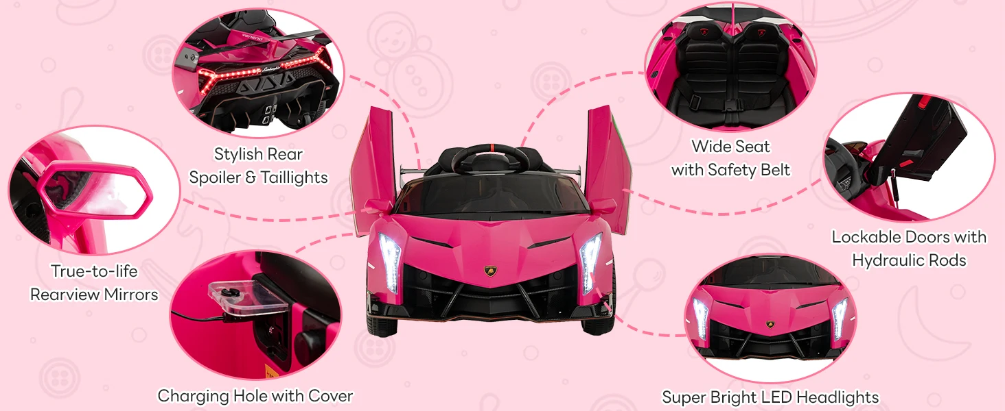 DORTALA Licensed Lamborghini 4WD Kids Ride-on Sports Car 12V Battery Powered Electric Vehicle with 2.4G Remote Pink/Black