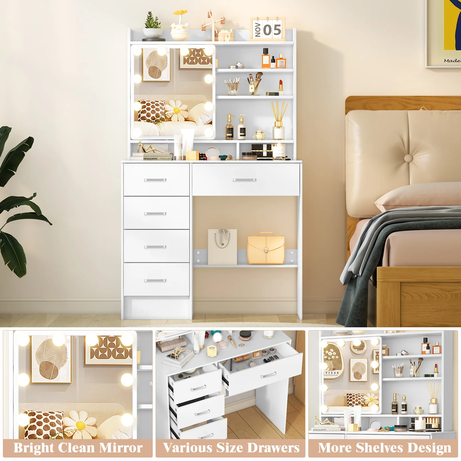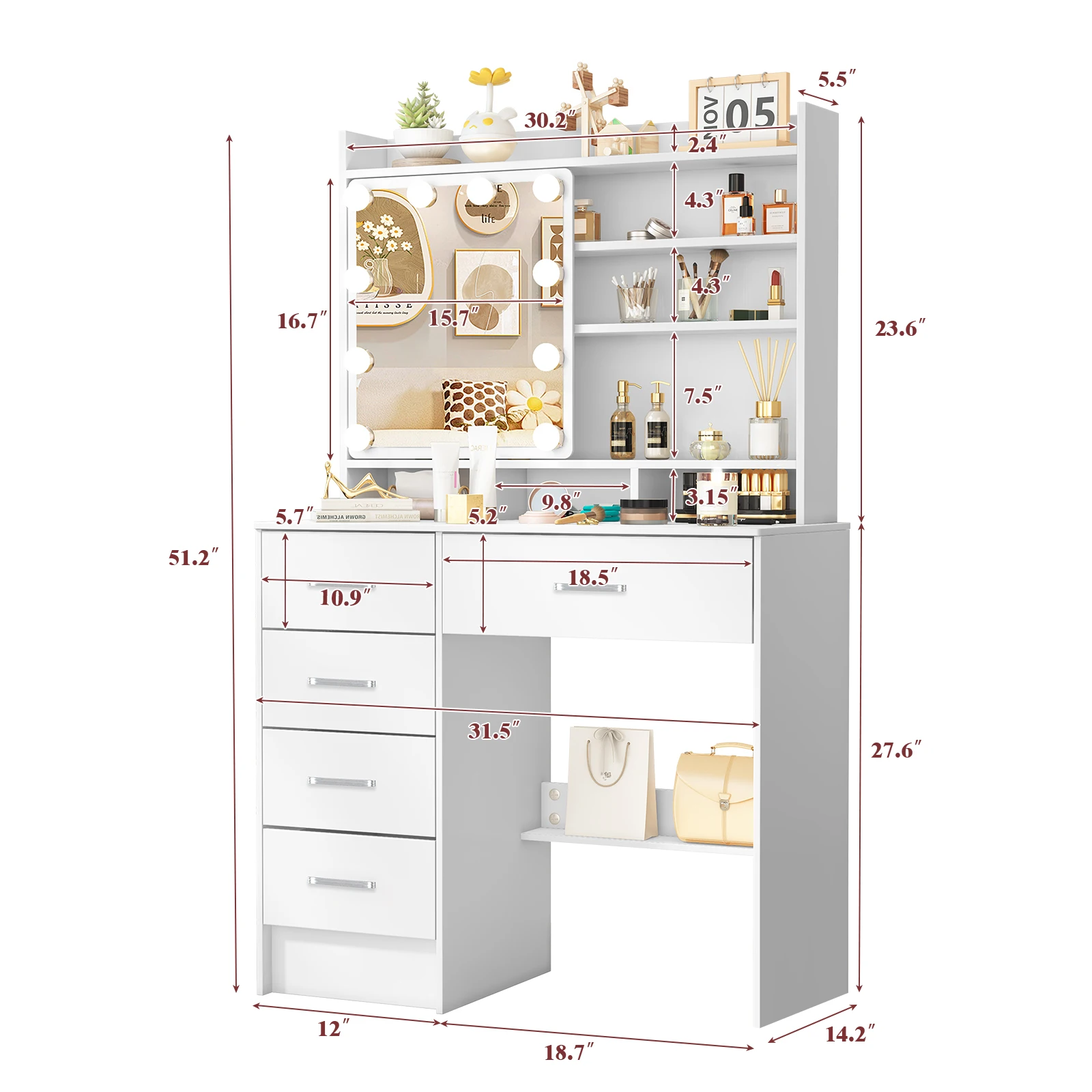 One medium drawer and four small drawers are perfect for storing jewellery, treasures and perfume, meeting all your make-up needs.