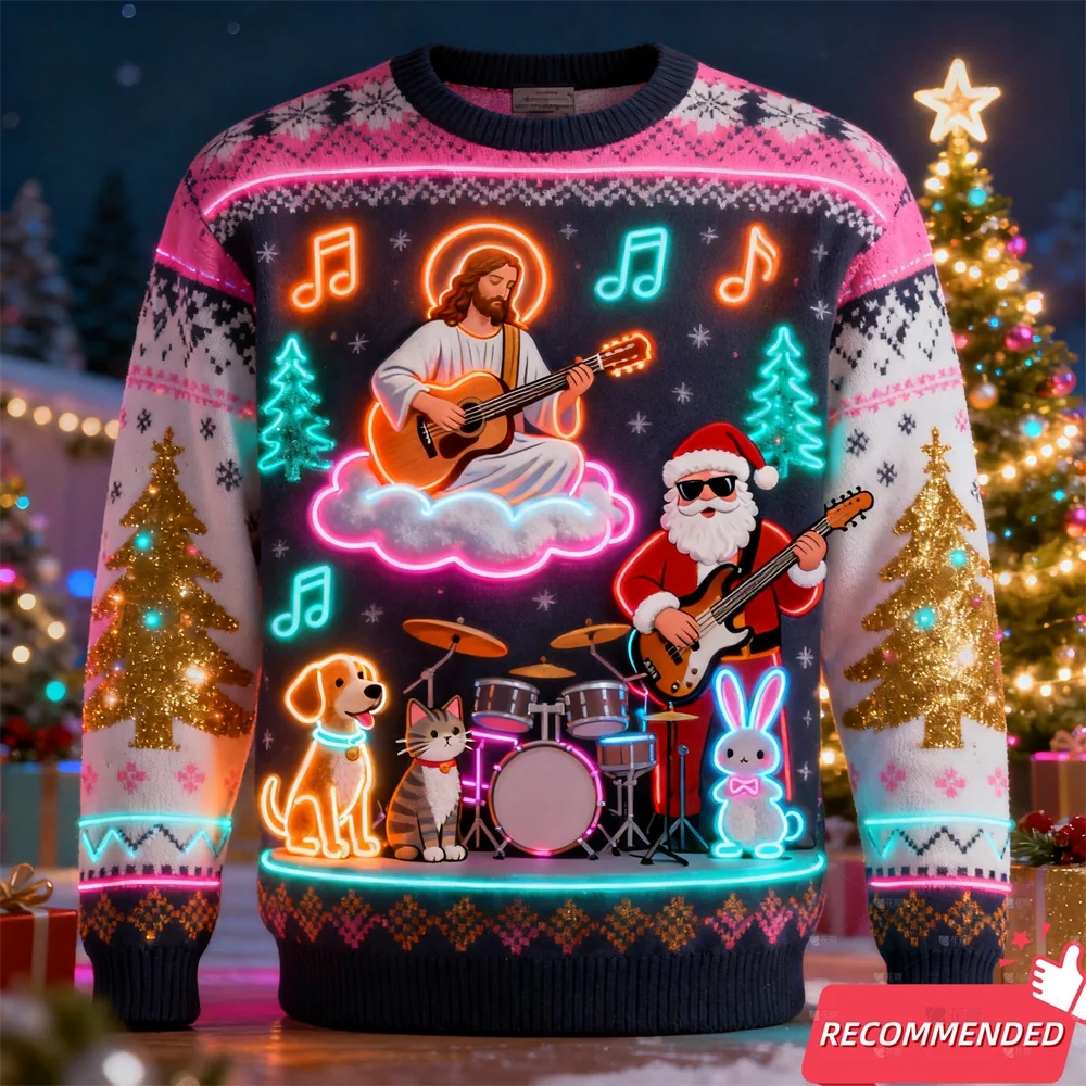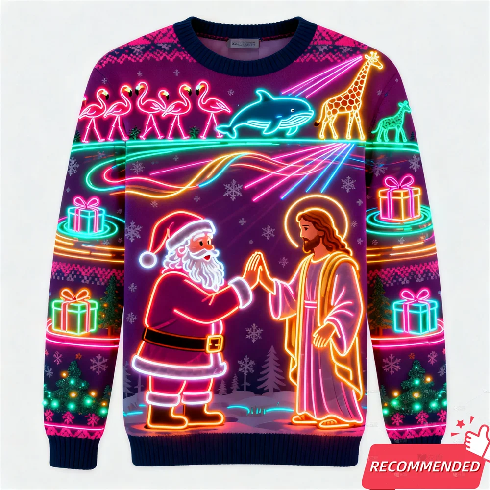 Fake Neon Light 3D Printed Ugly Xmas Sweater For Women Men Clothes Merry Christmas Snowman Funny Santa Jesus Pullovers Tracksuit