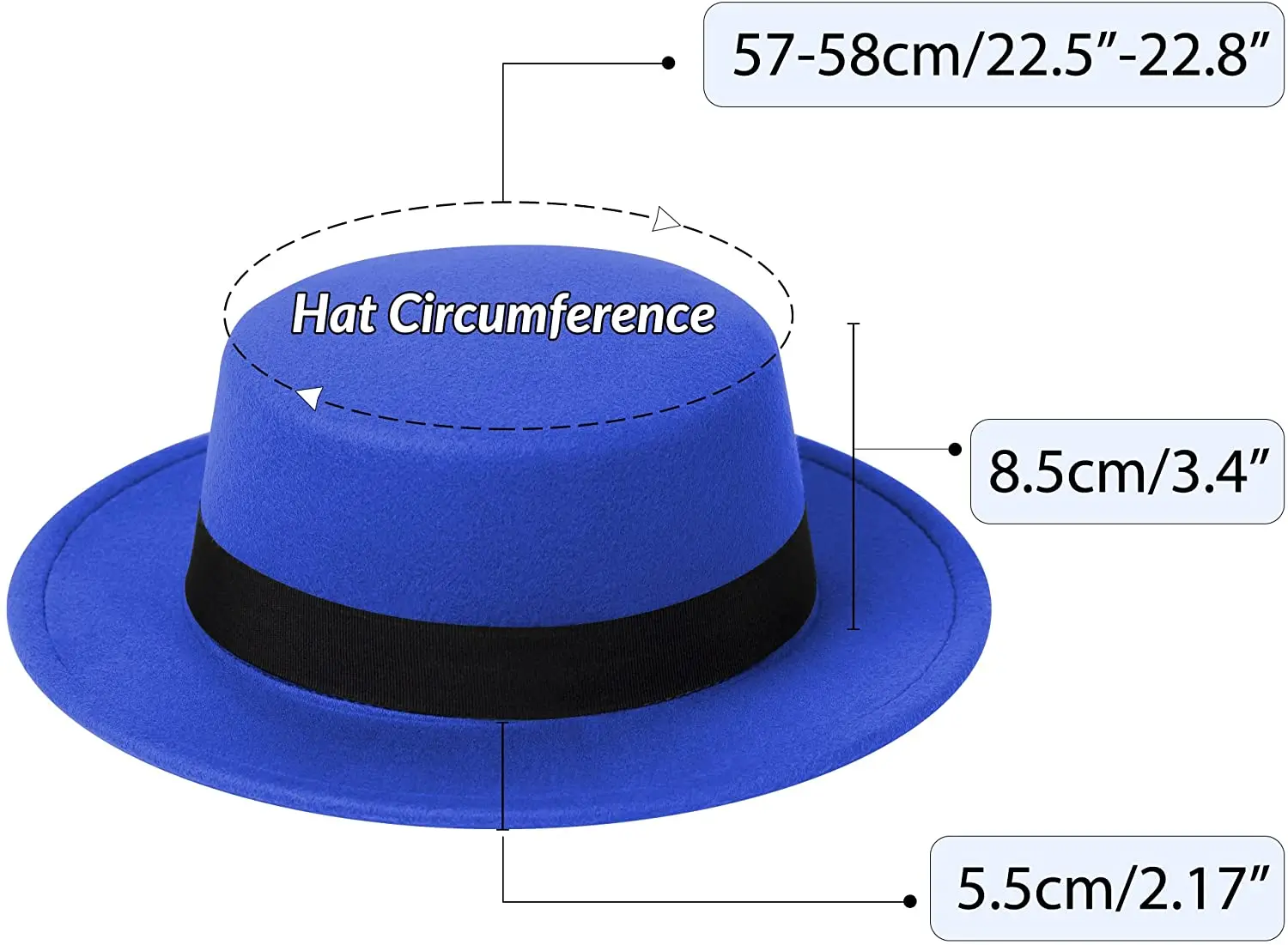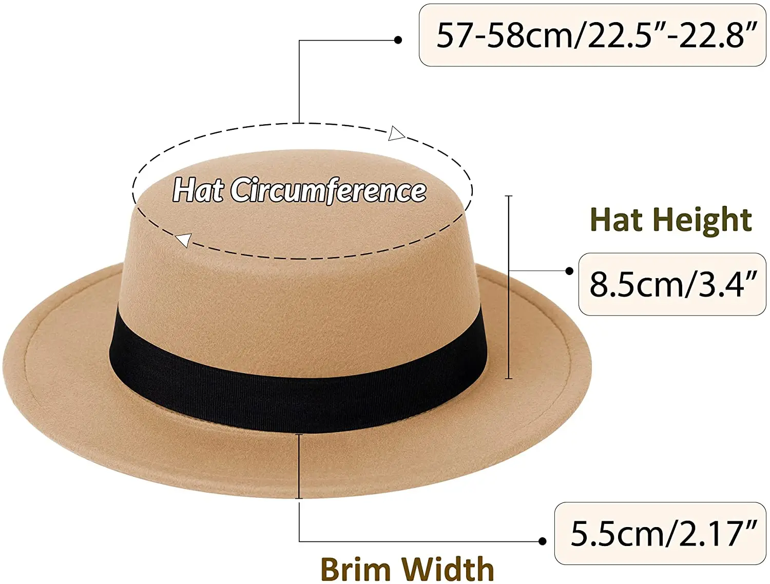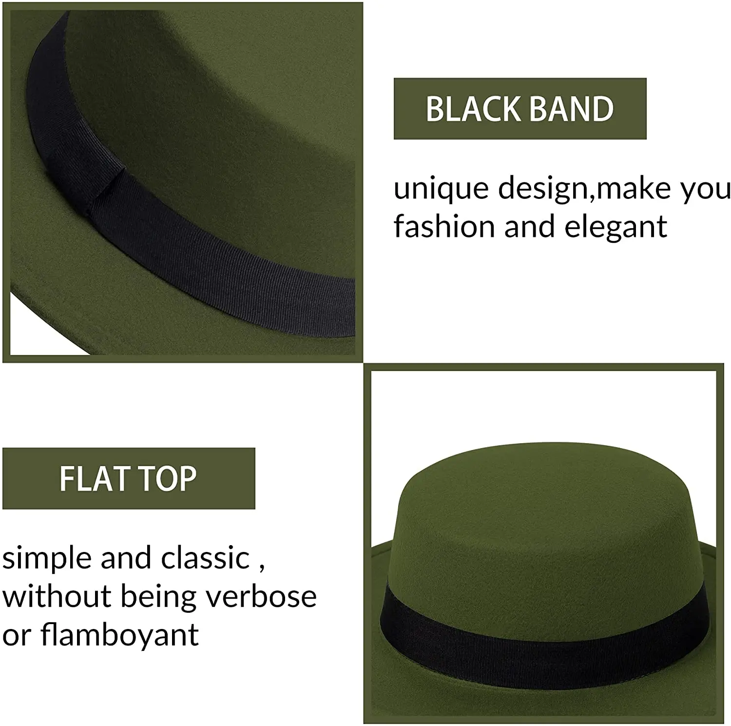 Fashion Fedora Hat Flat Top Hat Felt Pork Pie Hat Wide Brim Church Derby Boater Cap for Women and Men