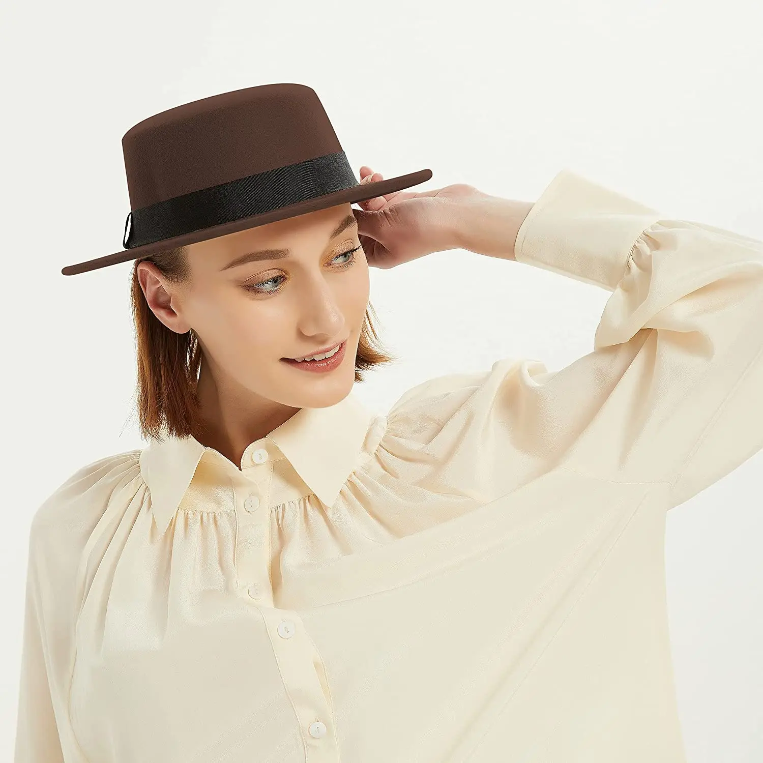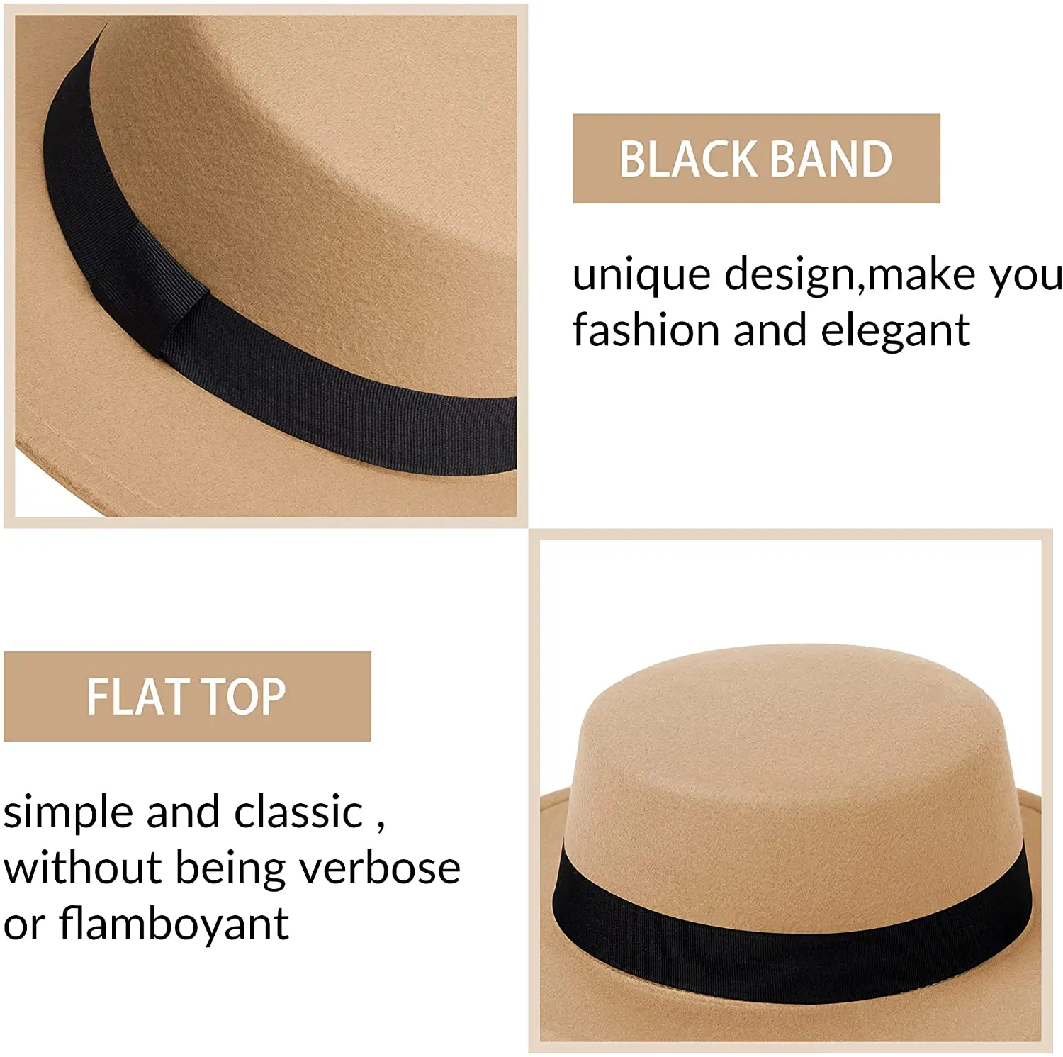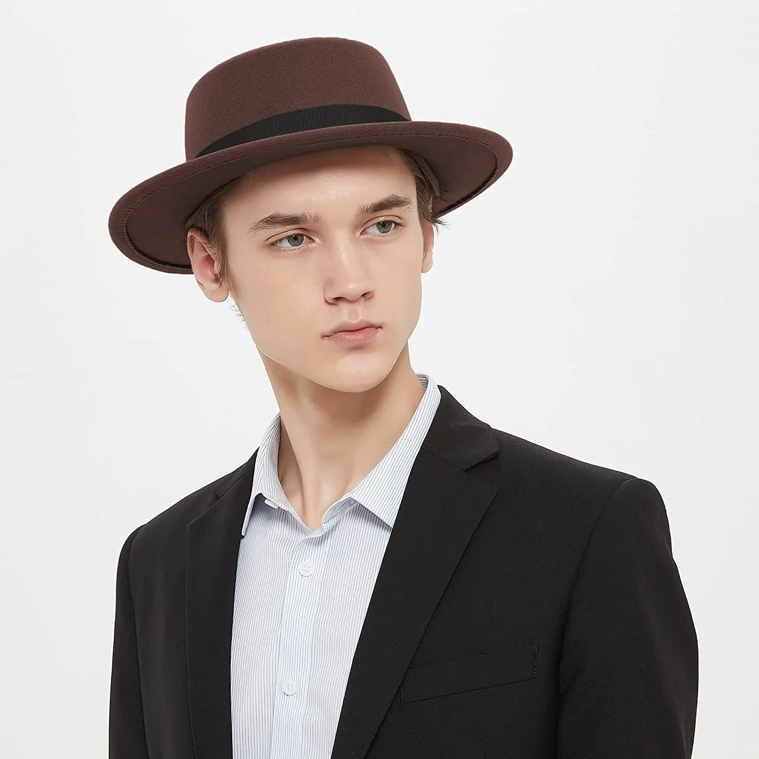 Fashion Fedora Hat Flat Top Hat Felt Pork Pie Hat Wide Brim Church Derby Boater Cap for Women and Men
