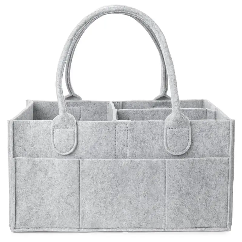 Foldable and portable-this felt diaper storage bag can be easily folded to facilitate car and luggage travel without taking up more space. It has a long and stylish handle, which is convenient for parents to carry around like a baby box. In addition, its special structure ensures that the tote bag basket remains undeformed.