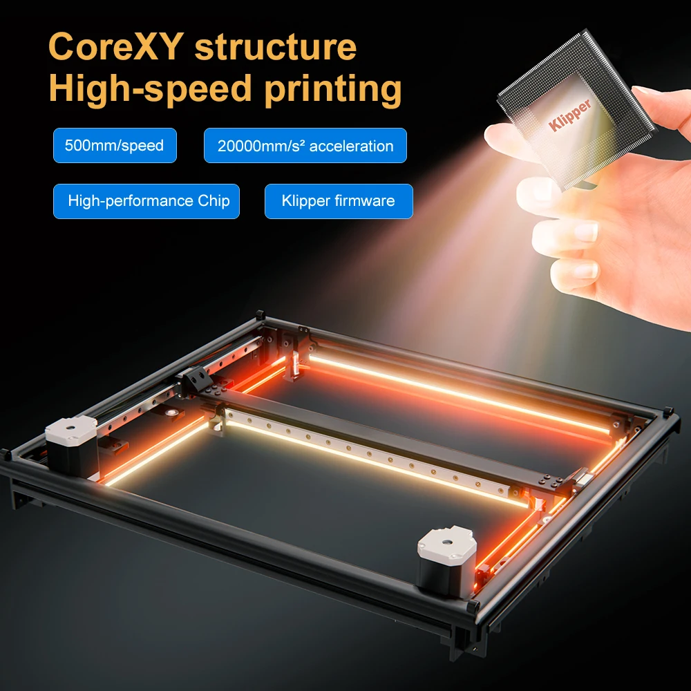 ● Lower inertia Core XY structure perfectly matched with Klipper Firmware,to improve high speed.