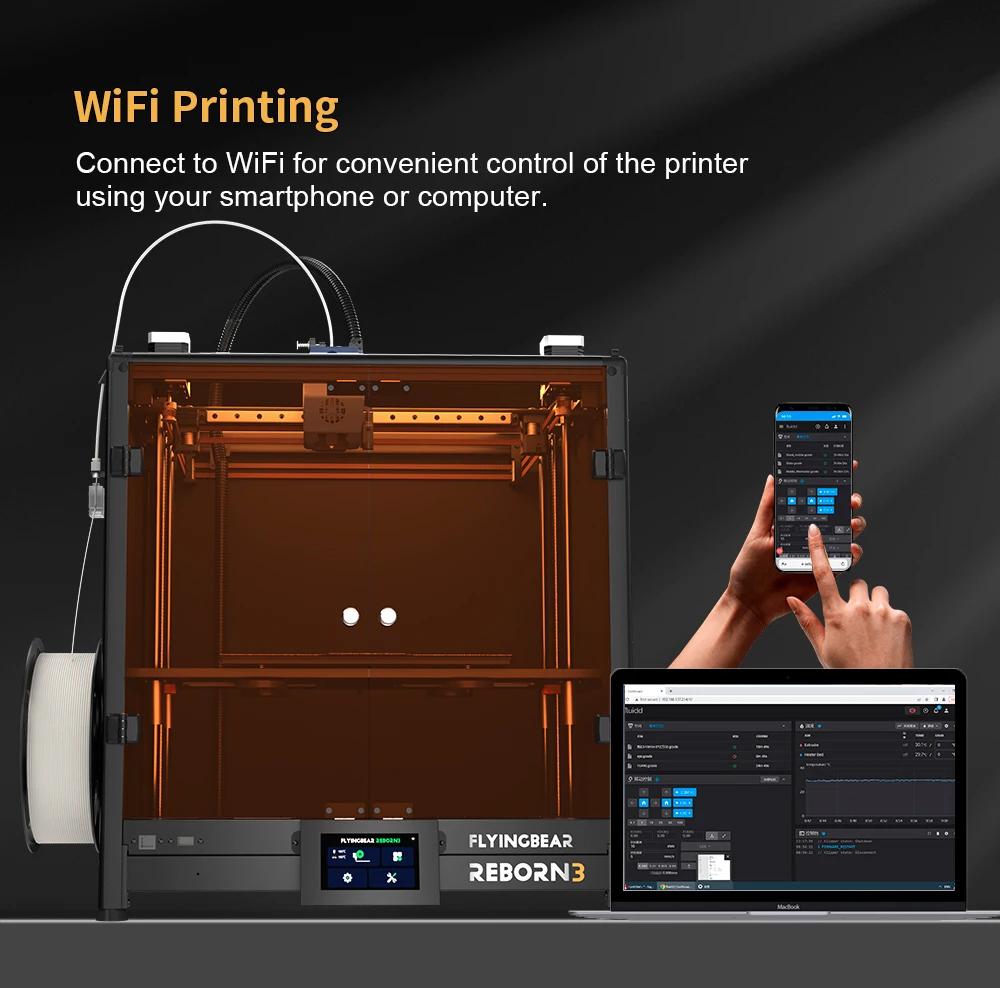● PC and smartphone also can control printing by WIFI connection.