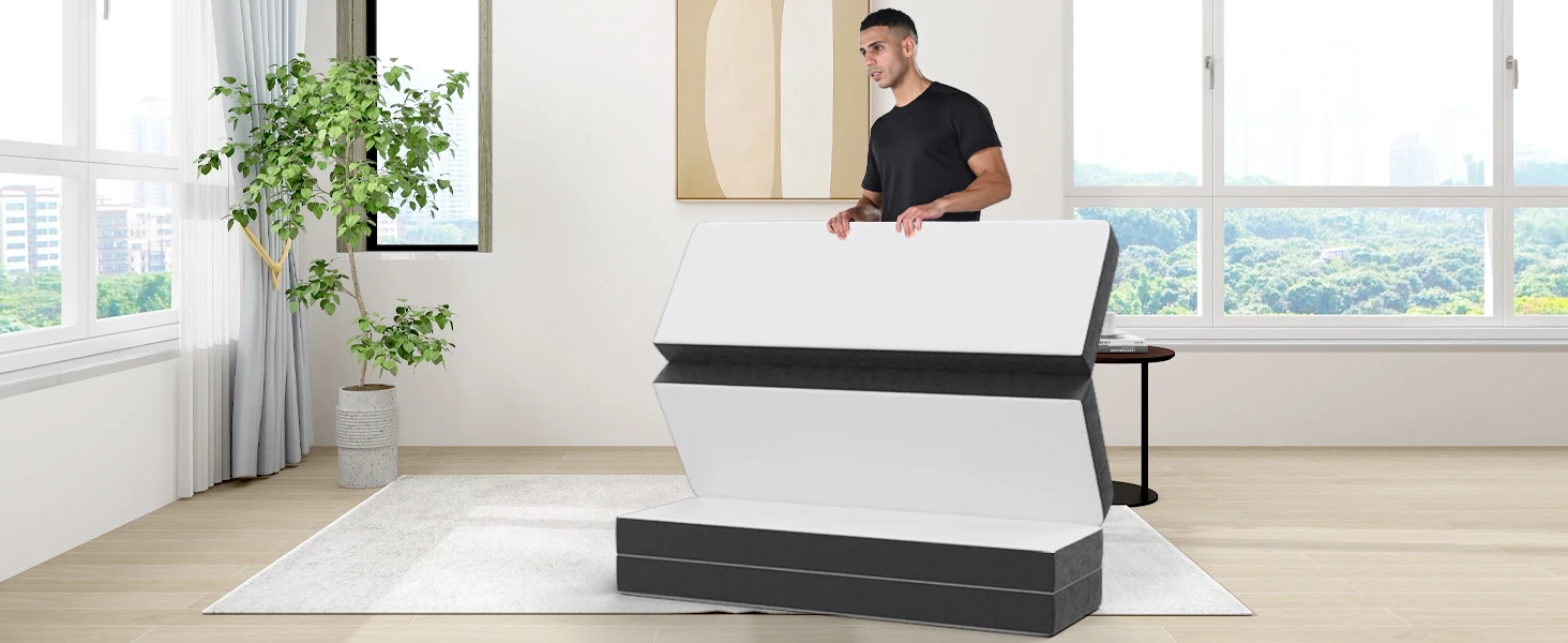 –folding mattress is compressed and vacuum-sealed, neatly rolled up in a box for a convenient delivery.To achieve a better sleeping experience, please allow about 48-72 hours for the slight odor on the packaging to dissipate and let the mattress fully expand based on the room temperature and ventilation.