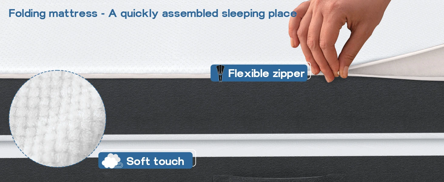 –The breathable cover is made of skin-friendly knitted fabric, which can absorb sweat and dry quickly, keeping cool after you sleep for a long time. The non-slip cloth at the bottom can prevent sliding during use. Coming with the smooth zipper, the cover of our 4-fold mattress can be easy removed for clean.
