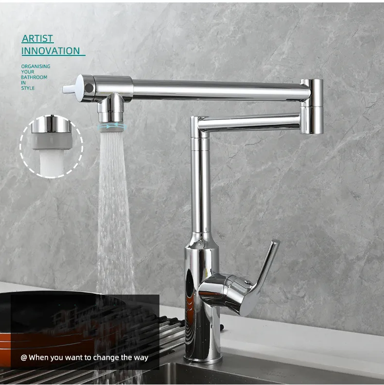 Foldable Kitchen Faucet Rotation Hot and Cold Brass Nickle Brushed Finish Sink Faucet Mixer Tap Chrome Sink Mixer