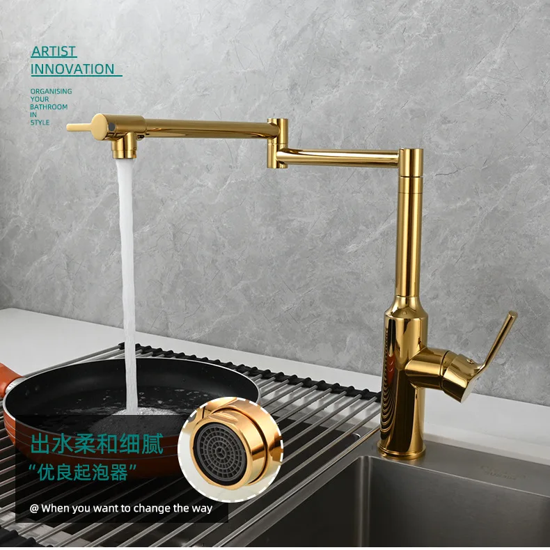 Foldable kitchen faucet hot cold rotation sink mixer copper