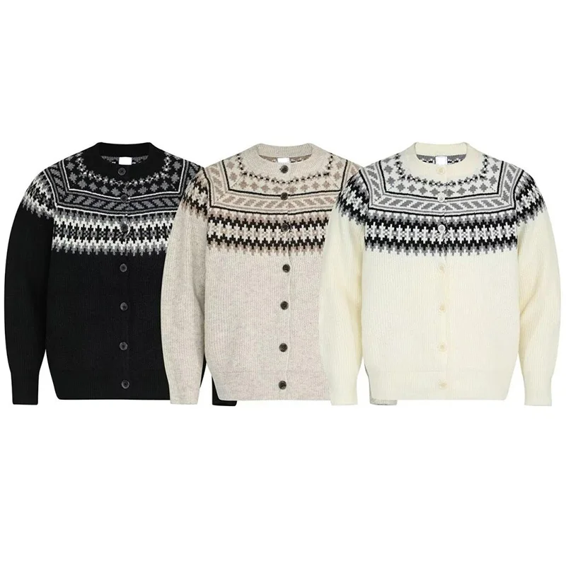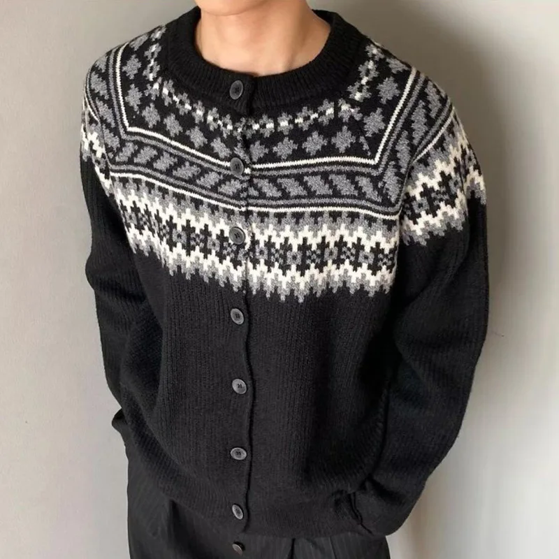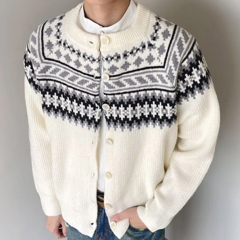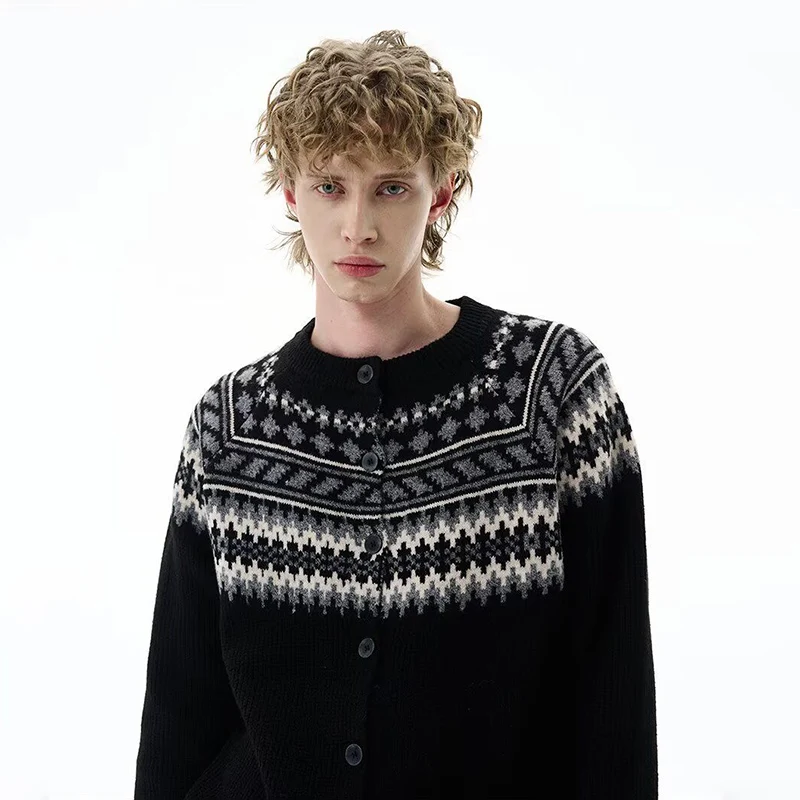 Geometry Fair Island Cardigan Sweater Male Christmas Knitwear Autumn Winter Men’s Pattern Christmas Sweater Button Cardigan Knit