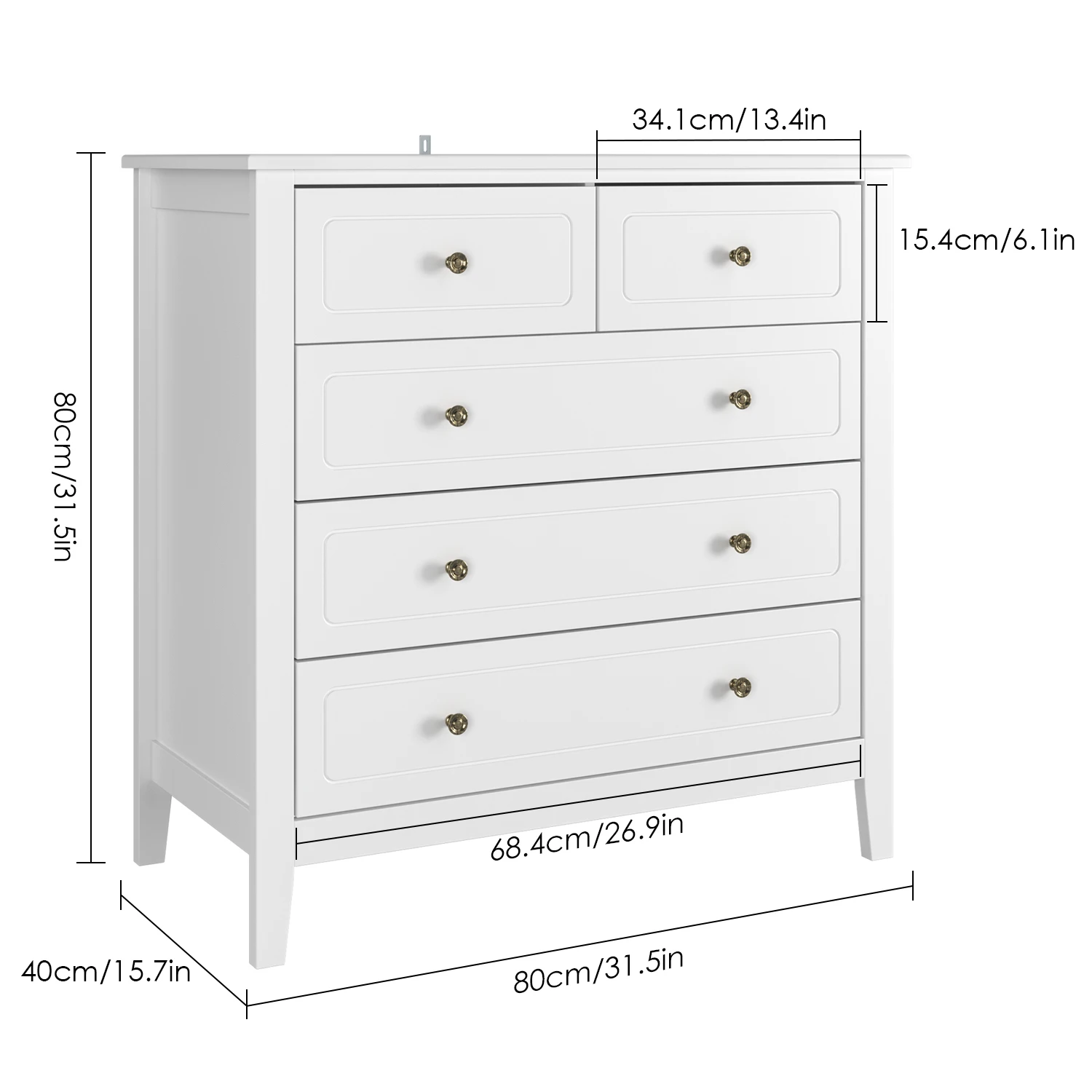 -Plenty of storage space-Dimensions of the modern dresser: 80x40x80cm. Equipped with 5 drawers for the storage of various items.