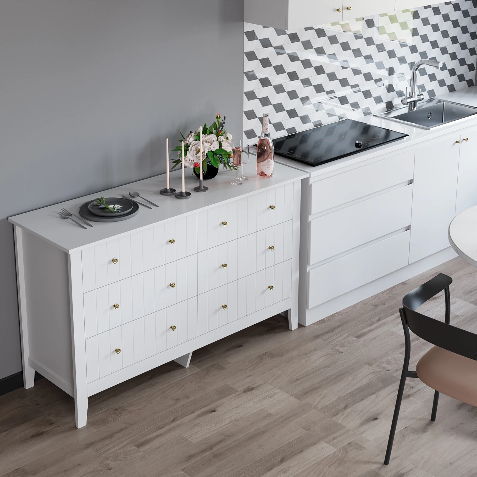 The white body and simple lines look bright and elegant. Dresser brings comfort and order to your daily storage.