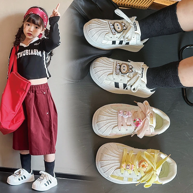 Girls’ canvas shoes 2025 autumn new style shell toe genuine leather boys’ white shoes children’s breathable sports shoes