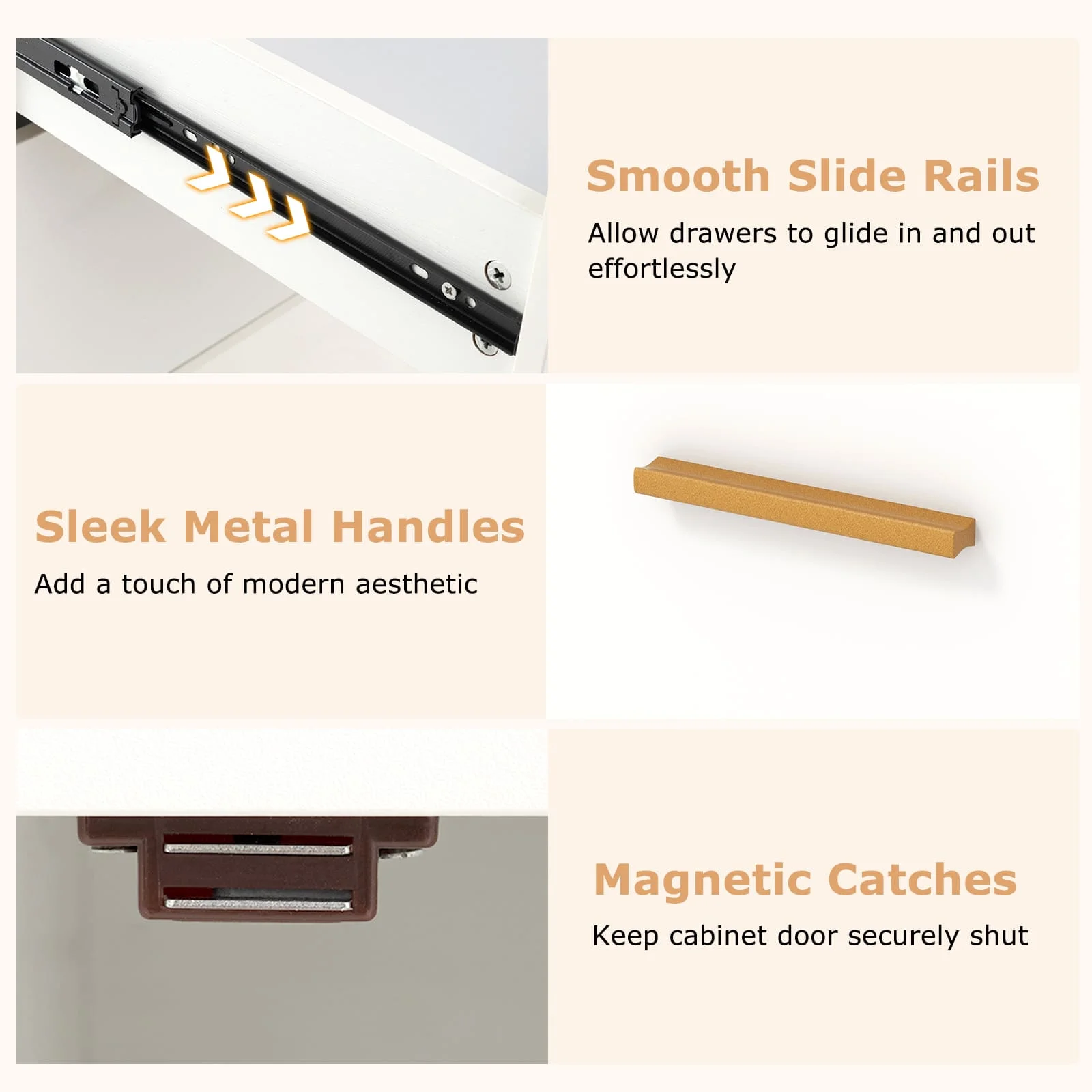 Convenient handles and smooth metal slides for effortless operation