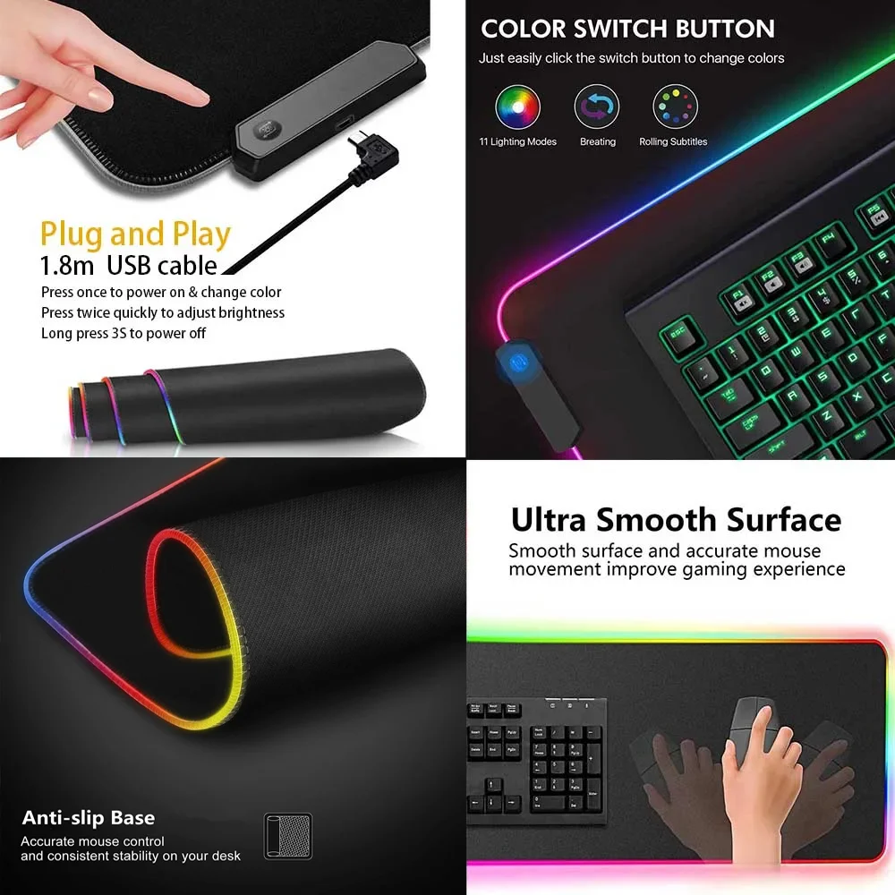 *Backlit LED Lights for Easy Use in Low Light Conditions: The backlit LED lights make it easy to use the mouse pad in low light conditions, ensuring that you can still see the surface of the mouse pad.