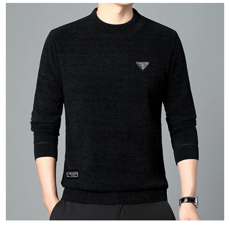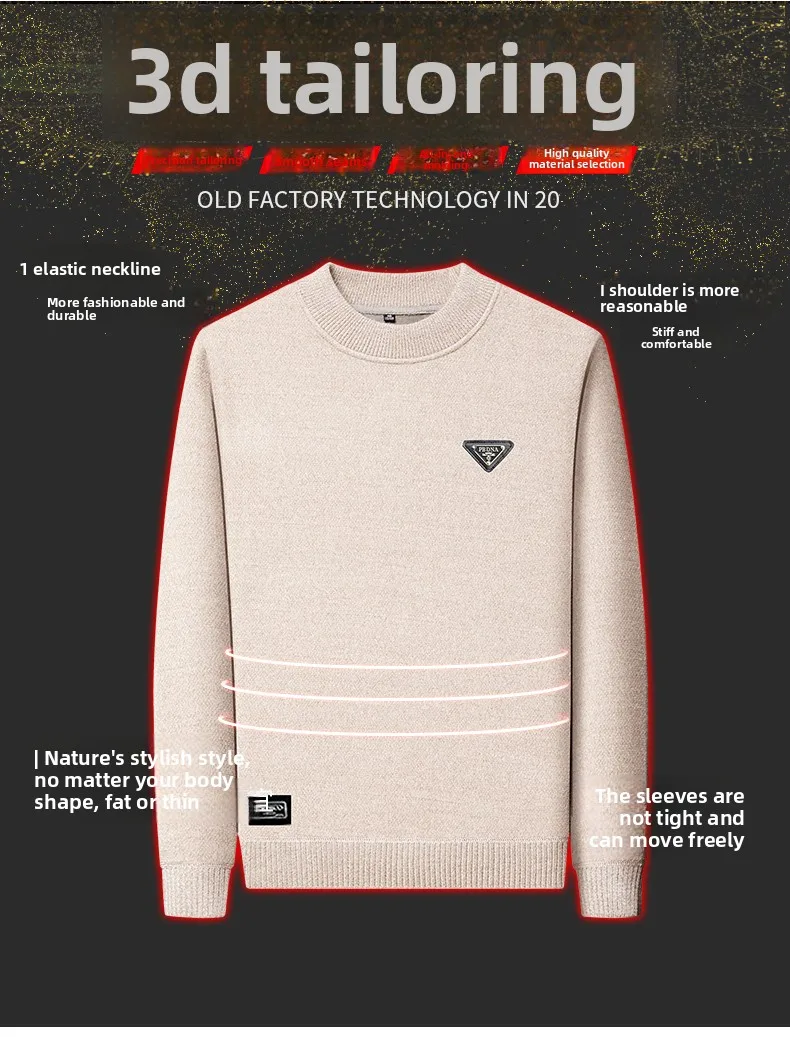 Autumn Winter Men's Exquisite Embroidered O-neck Ferret Fleece Thick Sweater