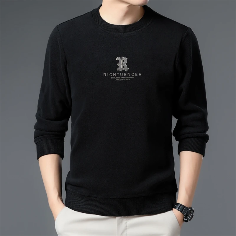 High quality men’s round neck sweater autumn winter warmth fashionable printed Korean style design boutique top casual pullover